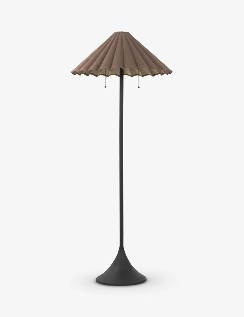 Bold textures meet refined lines in the Gibson floor lamp, casting a warm and refined glow. A scalloped shade tops a slender base, while dual pull chains lend an elegant touch. Style this lamp beside a reading chair or in a lounge for a sophisticated lighting moment.