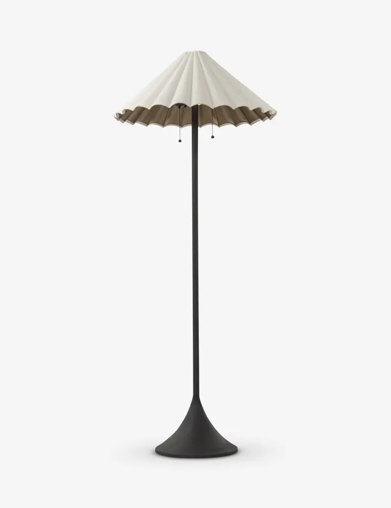 Bold textures meet refined lines in the Gibson floor lamp, casting a warm and refined glow. A scalloped shade tops a slender base, while dual pull chains lend an elegant touch. Style this lamp beside a reading chair or in a lounge for a sophisticated lighting moment.