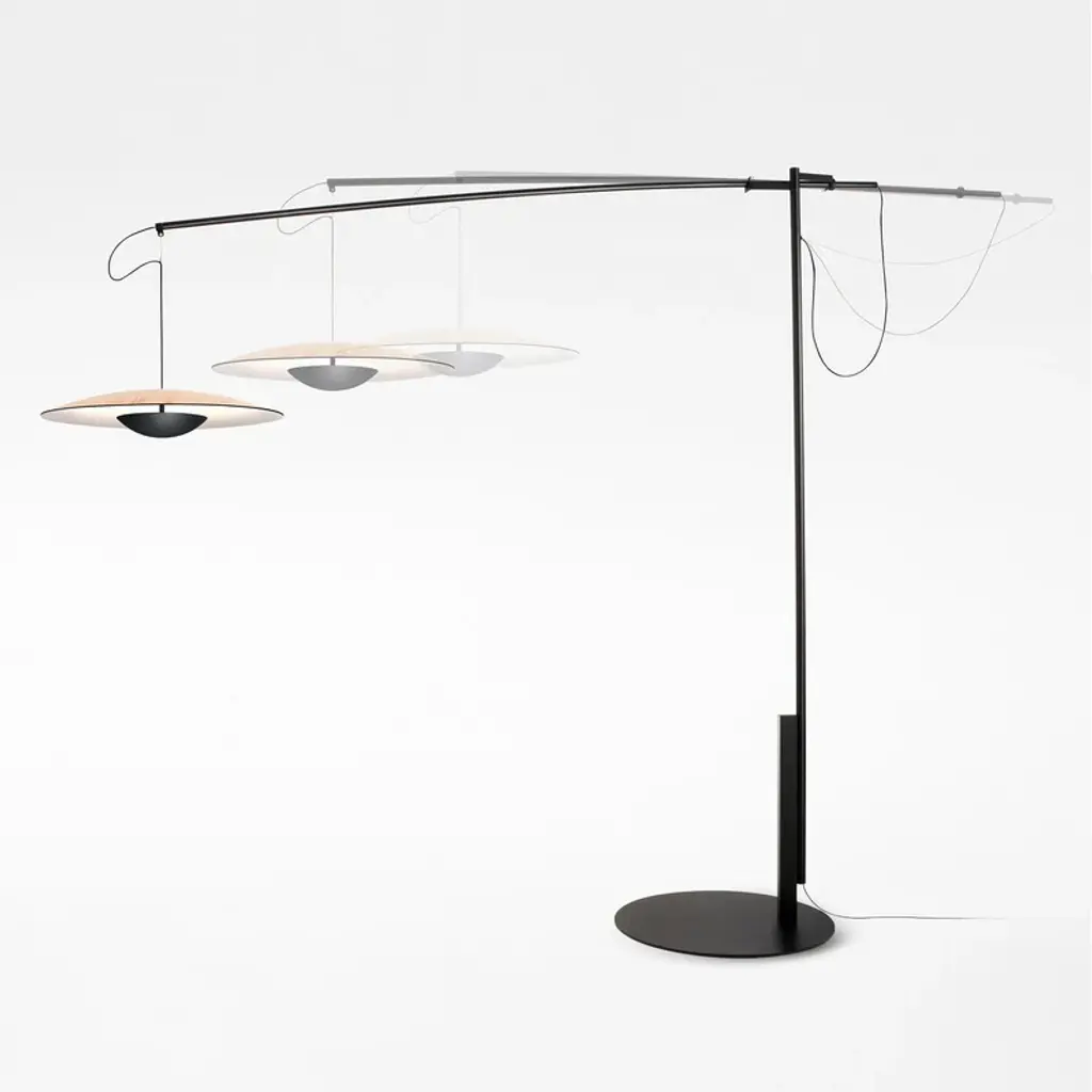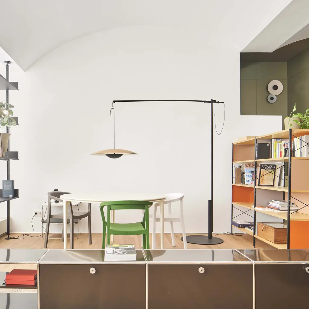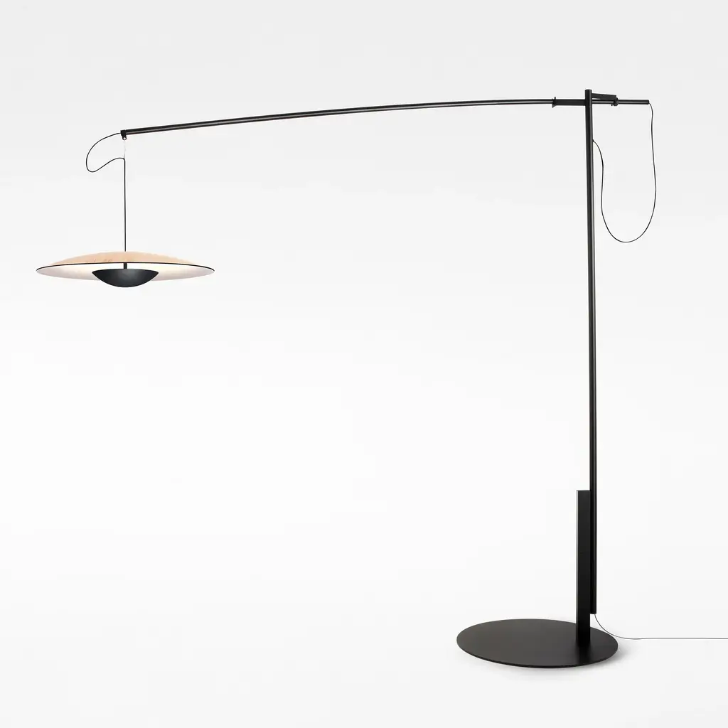 Illuminate your space with the Ginger LED Large Floor Lamp from Marset. Inspired by the cymbals of famous drummer Ginger Baker, this lamp features a slender design and a far-reaching light. The high-pressure shaping of wood and paper creates an ultra-thin shade that amplifies the warm LED light. With a ninety-degree arched stem and adjustable height, this lamp adds a touch of elegance to any room. Highlights