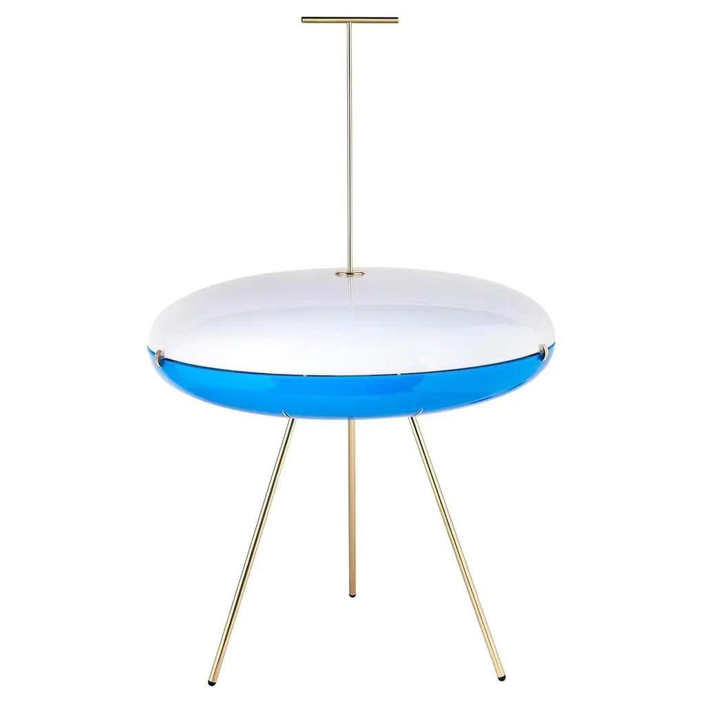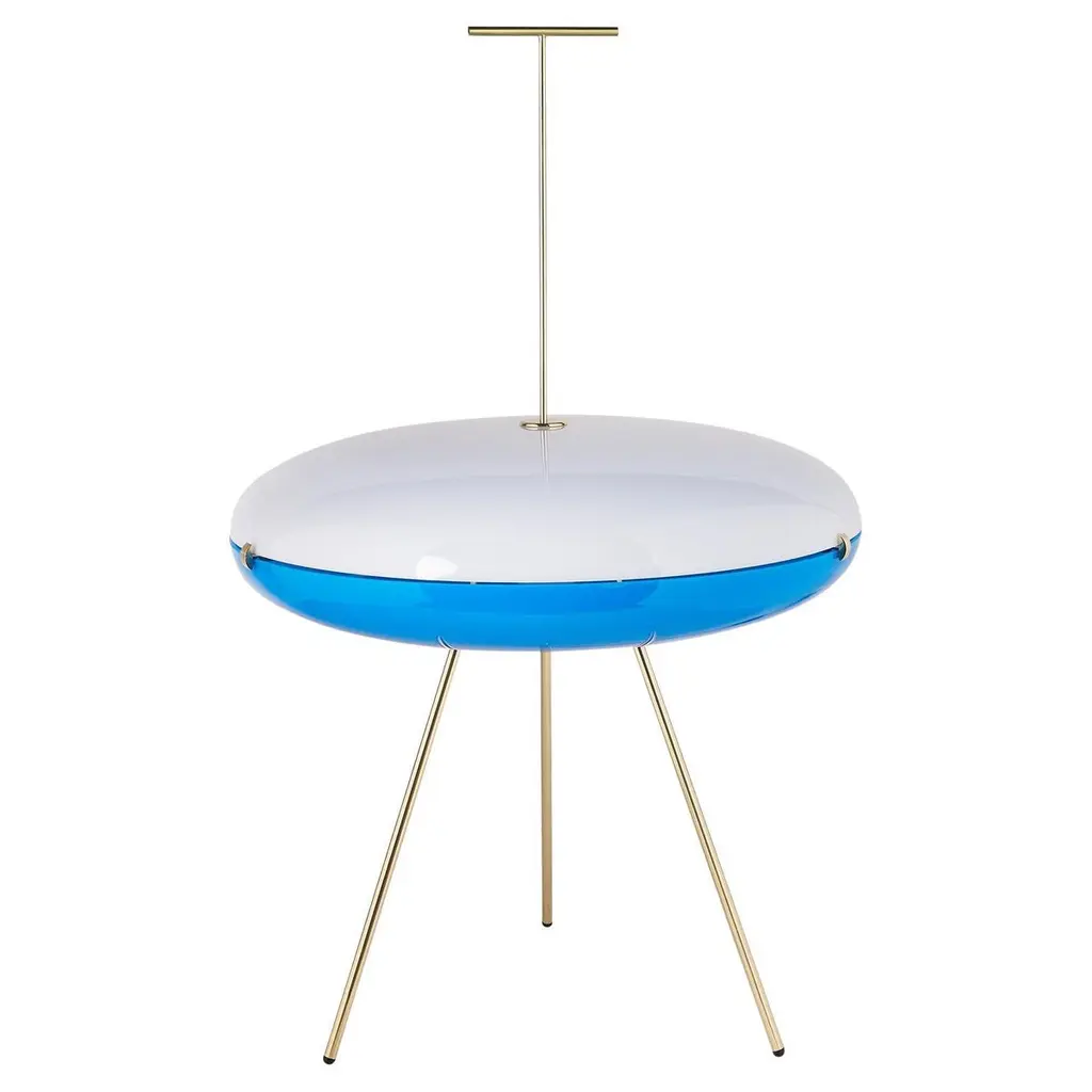 Gio Ponti Luna Orizzontale Floor Lamp in Satin Nickel for Tato Italia.Based on an incredible but never before issued prototype designed by Ponti in 1957 for the Triennale in Milan, the 'Luna Orizzontale' is executed in brushed nickel hardware with acrylic diffuser and step switch cord using the finest materials available and to the exacting standards of Tato Italia.Price is per item. Available to order in unlimited quantities. Available frames in brass, satin brass or satin nickel. Diffuser available in all glossy white, glossy white/blue, or glossy white/orange. Also available in a vertical version as well as a pendant in separate listings. Please see our other listings or inquire for more information. This listing is for the 'Luna Orizzontale' floor lamp in satin nickel with a glossy white diffuser.In stock lead time 12-14 weeks. Out of stock lead time an additional 10-12 weeks or longer. Inventory availability subject to change without notice. Please inquire for time sensitive projects.Accommodates 3x medium E12 bulbs, maximum 8 watts LED (bulbs not included). Not UL Listed but UL listing possible through authorized third party vendor for an additional cost.Made to order.All sales final.