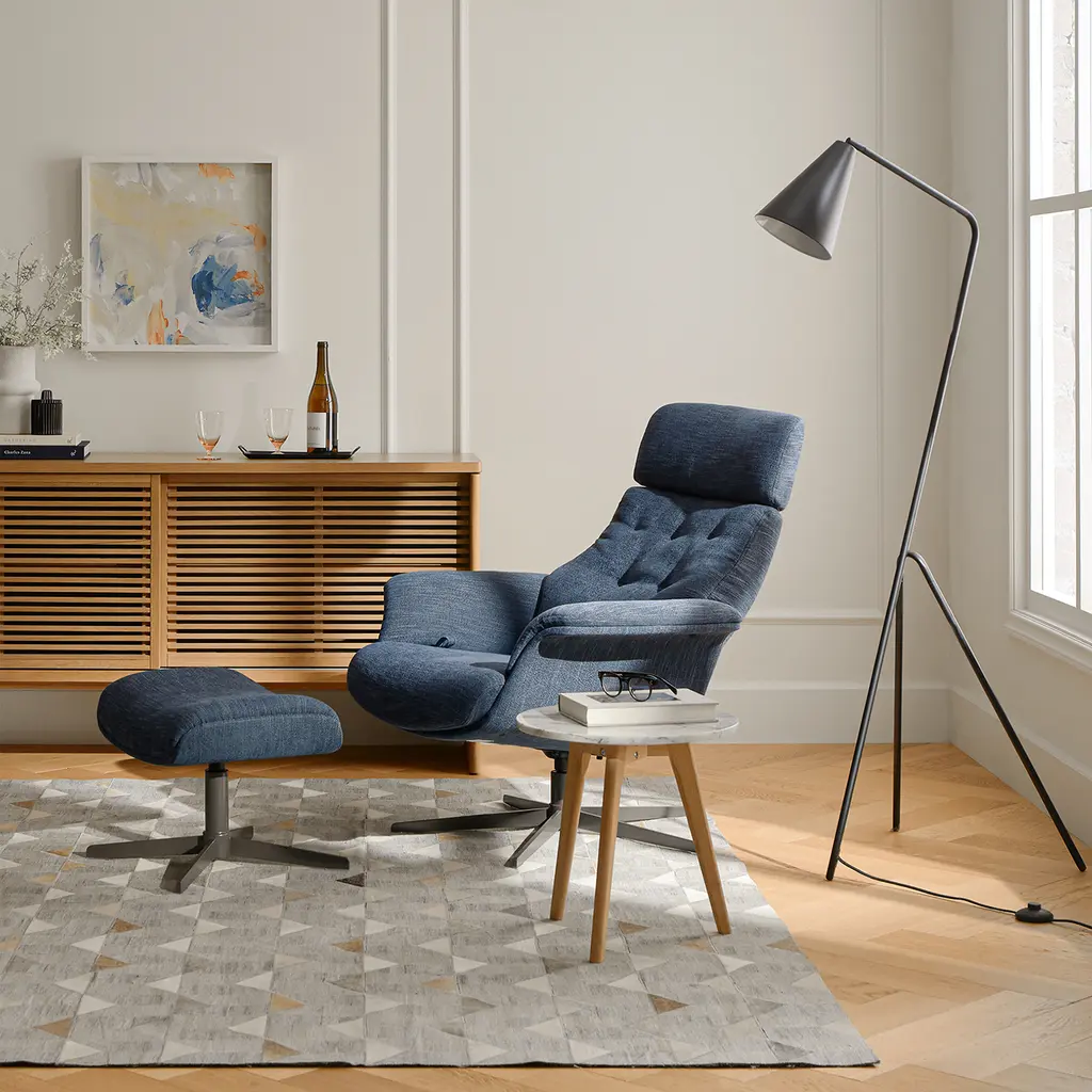 Inspired by a mid-century modern classic, the Gira lamp is beautifully streamlined to offer light precisely where it’s needed. Crafted from solid metal, its slim tripod frame appears light but durable and its conical shade is easily adjustable to aim light precisely.