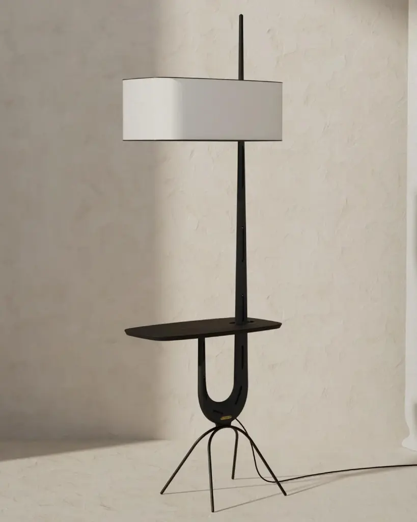 Designed in 1952, with its slender silhouette, both elegant and avant-garde, the Giraffe Tablet floor lamp perfectly embodies the spirit of innovation of the Rispal house.Finish: American WalnutDIMENSIONS:H. 168 x D. 40 x W 46 cm