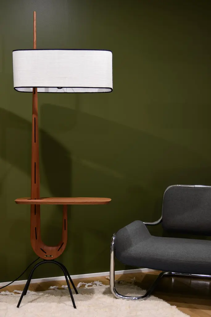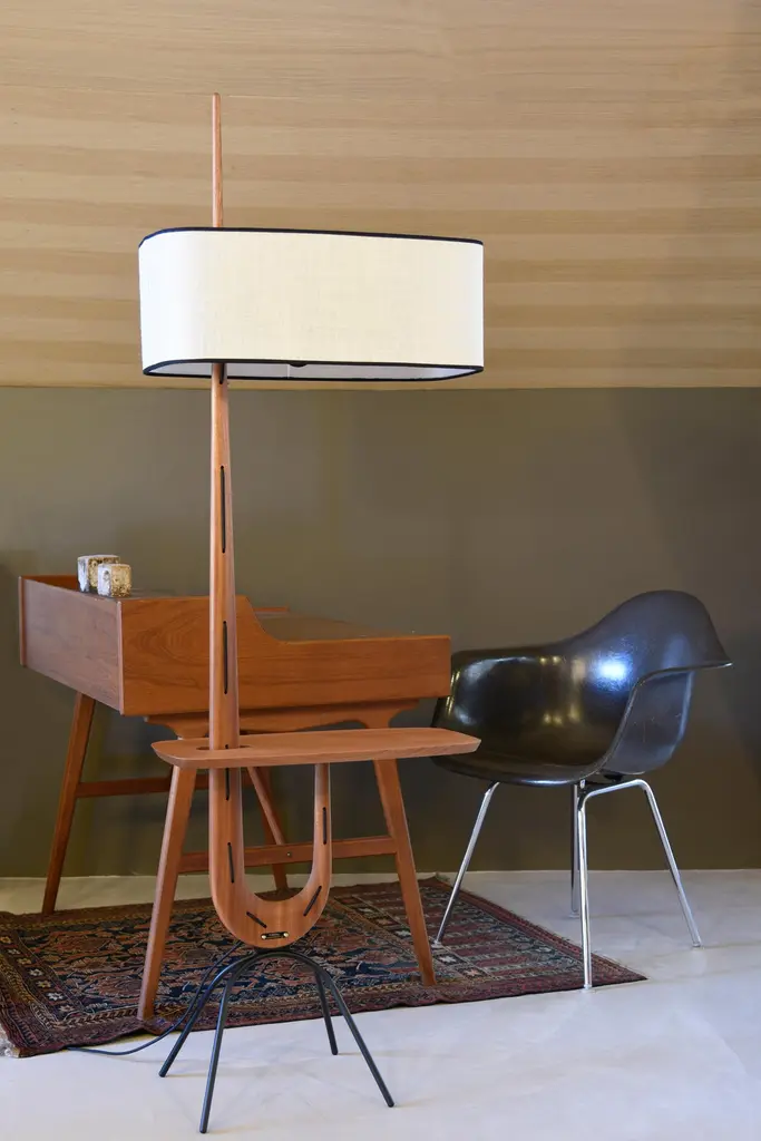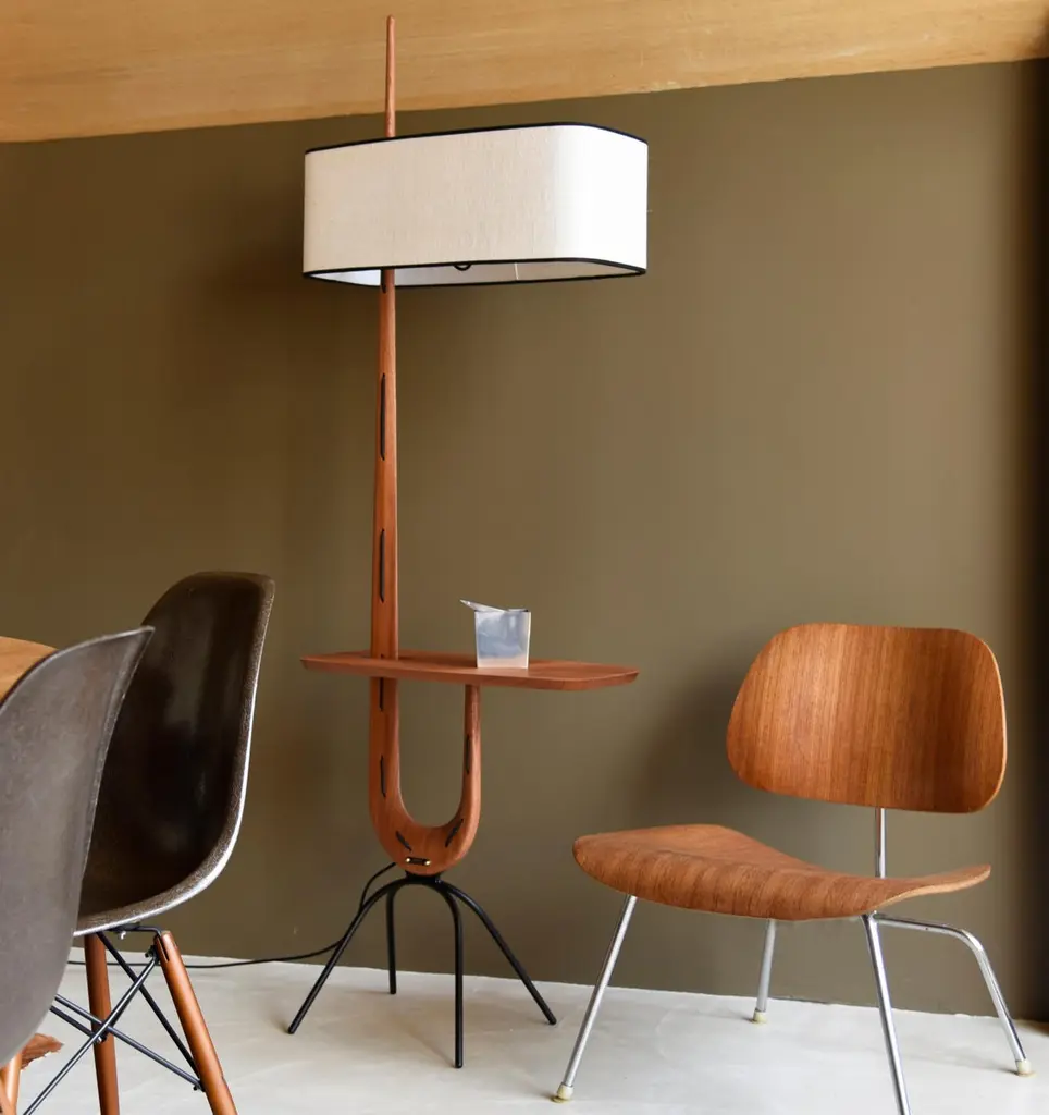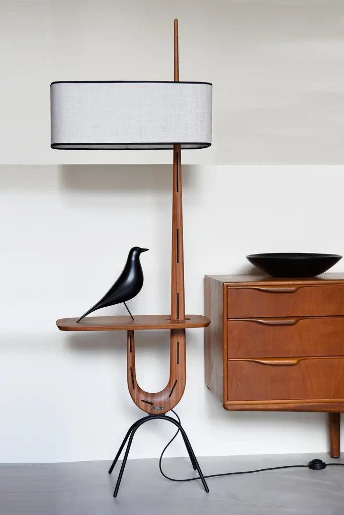 Designed in 1952, with its slender silhouette, both elegant and avant-garde, the Giraffe Tablet floor lamp perfectly embodies the spirit of innovation of the Rispal house.Finish: Natural MahoganyDIMENSIONS:H. 168 x D. 40 x W 46 cm