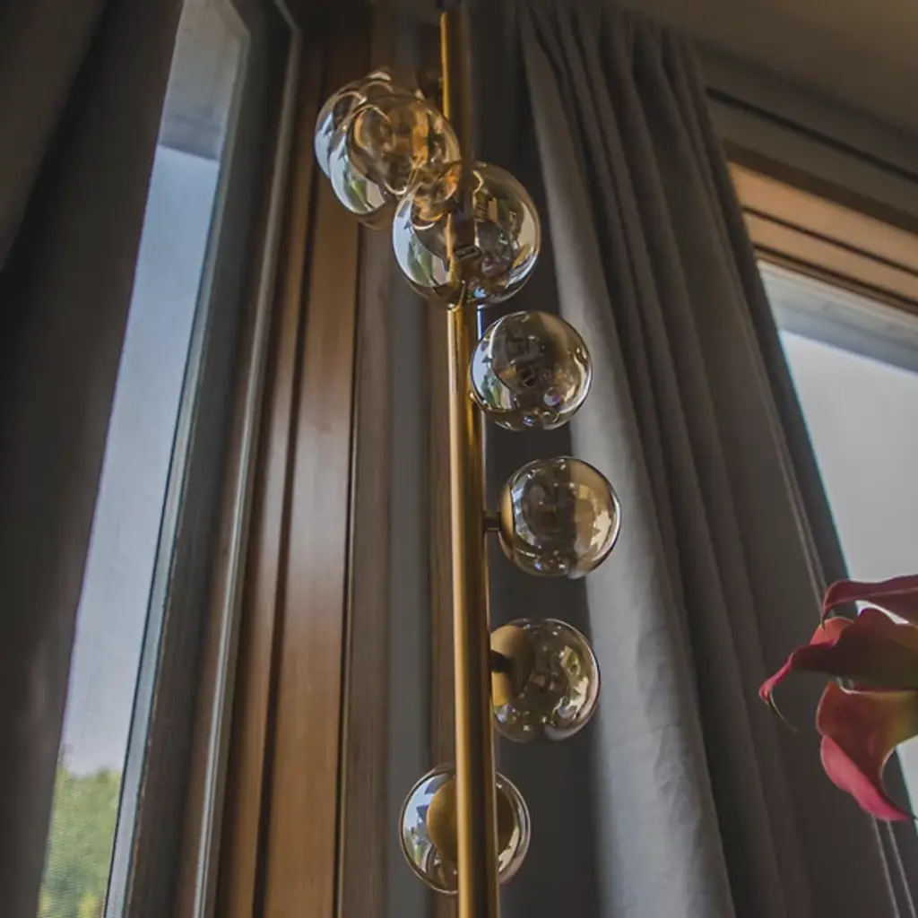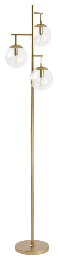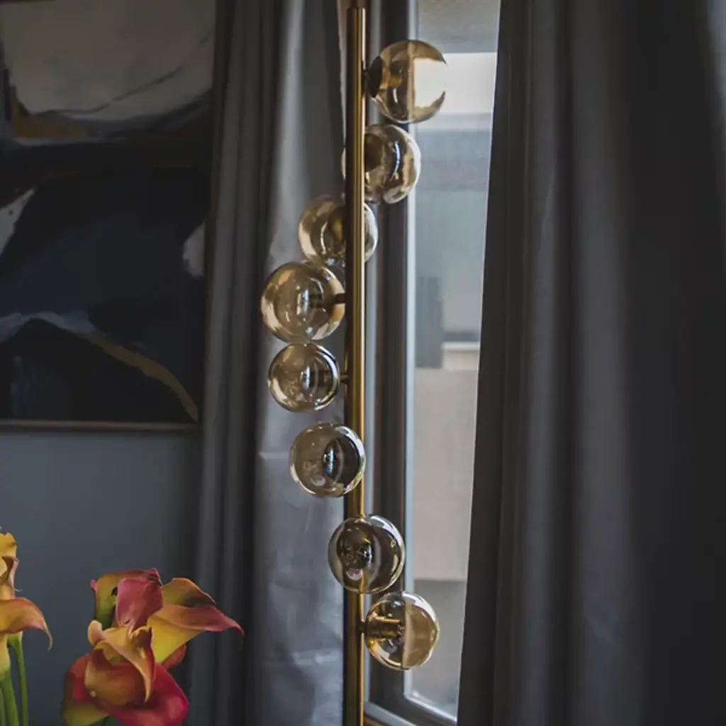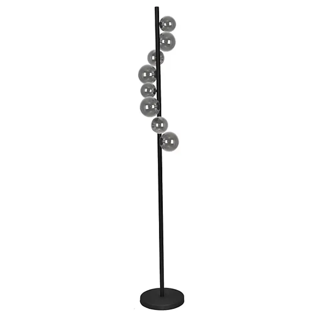 The Glasgow Floor Lamp from Dainolite brings elegance to a space with a chic blend of contemporary style and modern design. A rounded metal base steadies a slender body as it rises. Spherical glass shades line the top of the stem, changing in size as they spiral around its length. Incandescent bulbs are set within each glass shade, casting a warm and radiant light that brings any space to life.