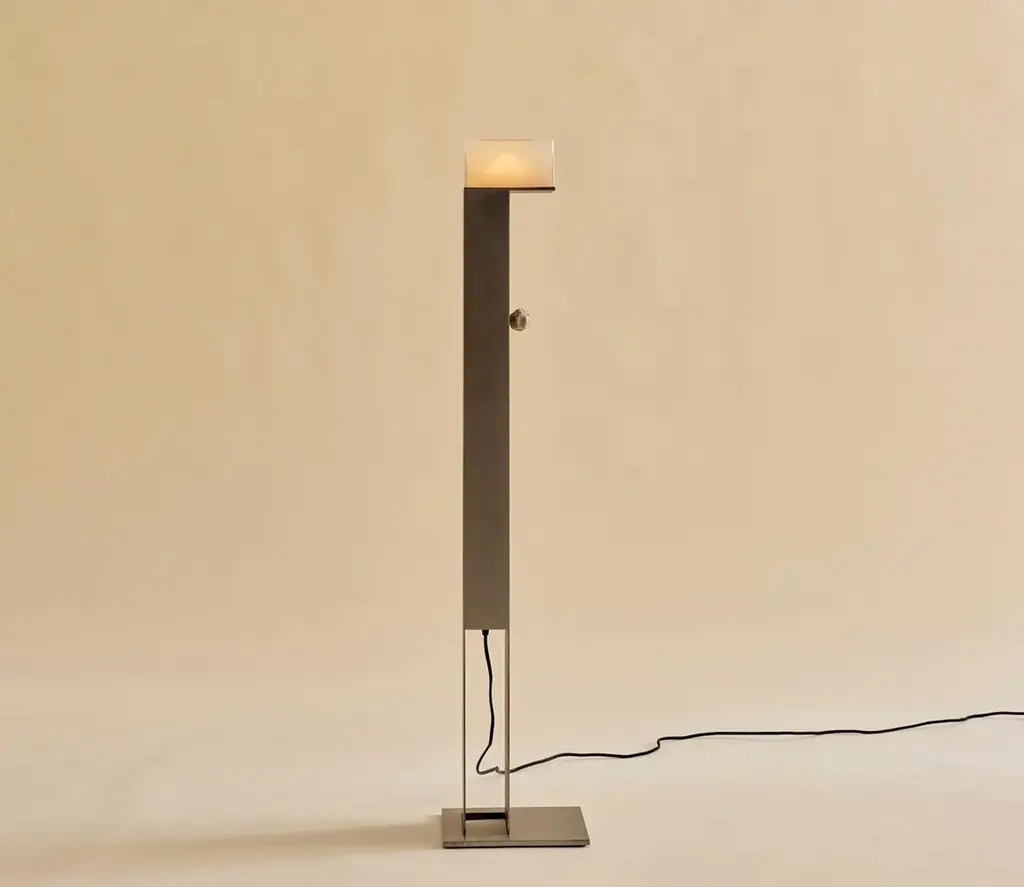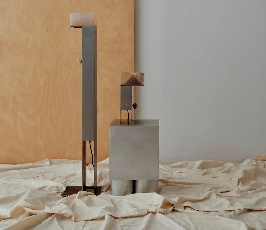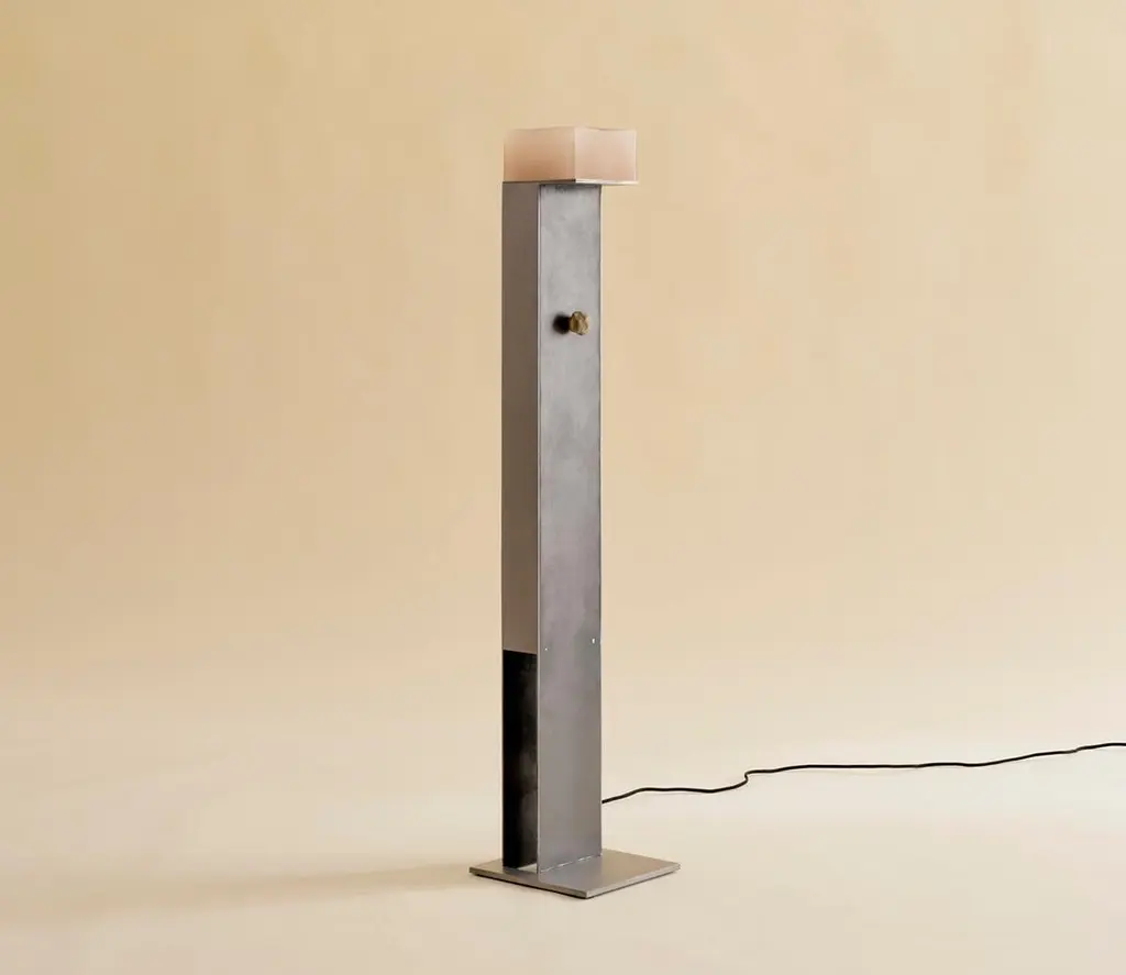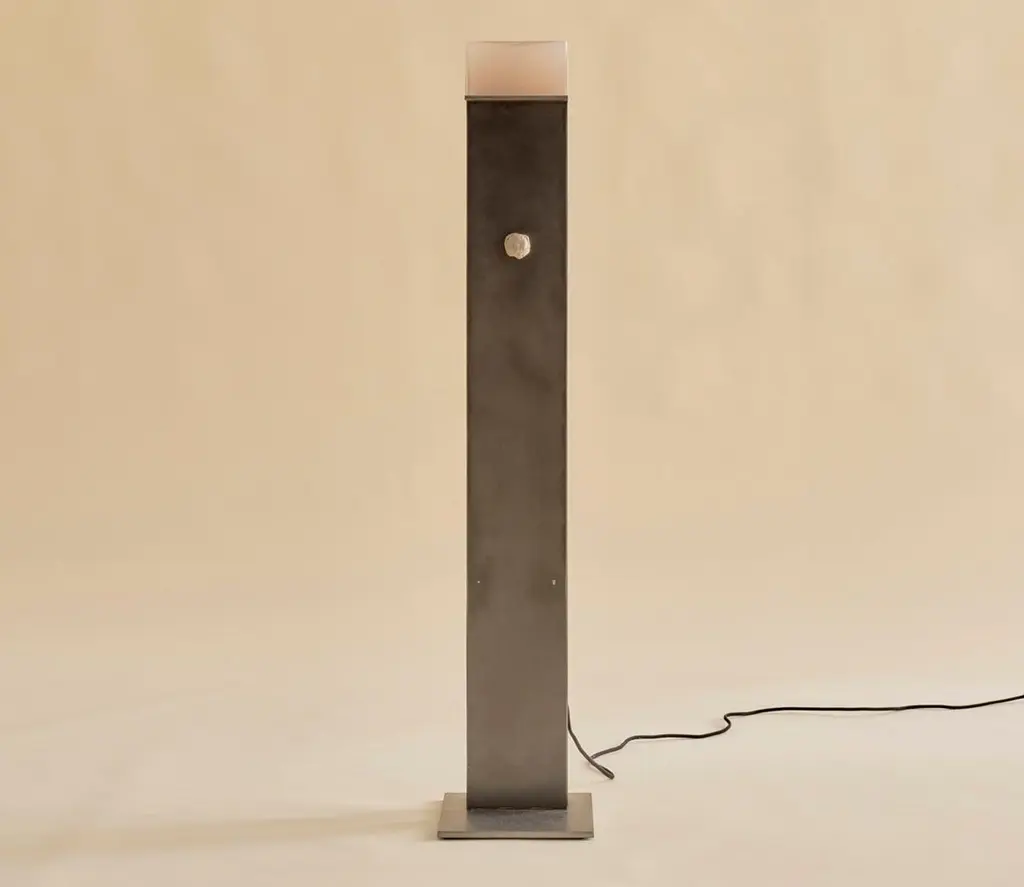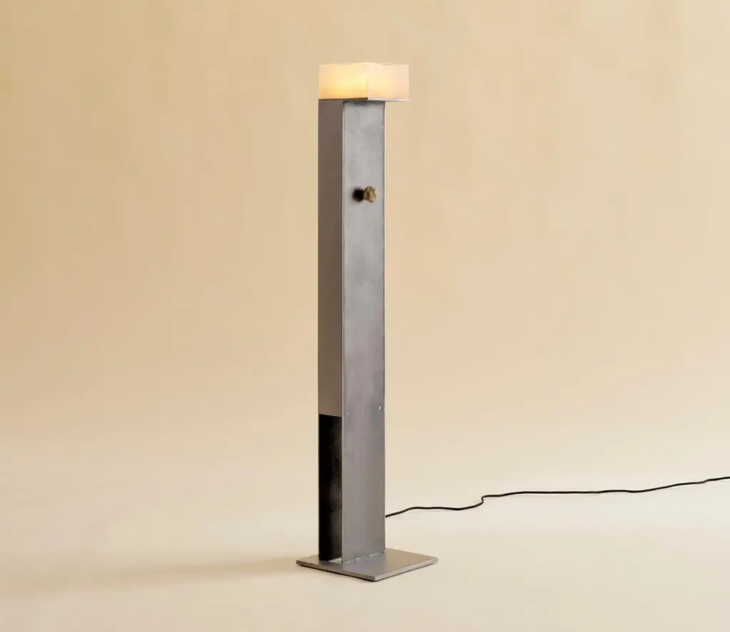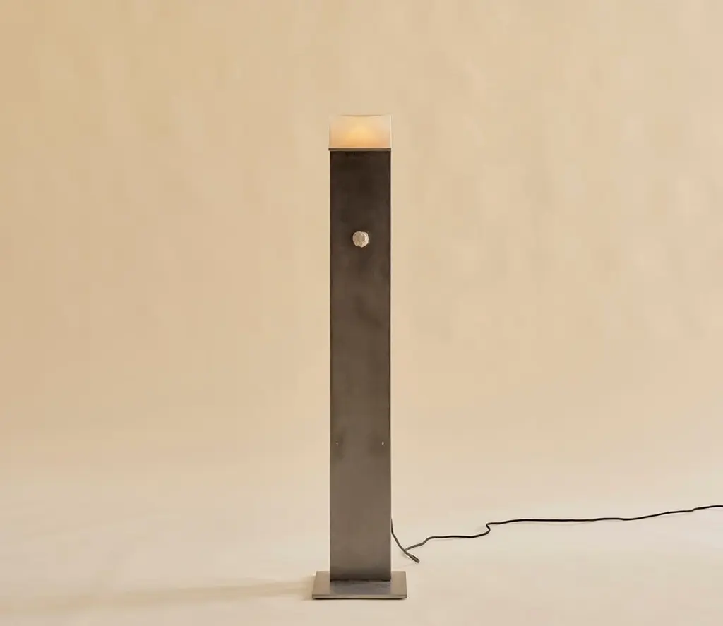 Delicate hand-blown glass and patinated steel combine to striking effect in this atmospheric table lamp that sets the mood with an alluring soft glow. The layered, mold-blown glass has been handcrafted to create a distinct effect to diffuse light. The glass has subtle irregularities in contrast to the more uniform nature of the steel frame. The ceramic dimmer knob is handmade, utilizing a reactive glaze; each piece takes on its own relationship with the formed clay.Available in stainless or raw steel finishes with a clear or smoky pink glass shade. 120v / UL LISTEDLAMPING EMERY ALLEN E12 2.5W, 2700k (BULB INCL.)
