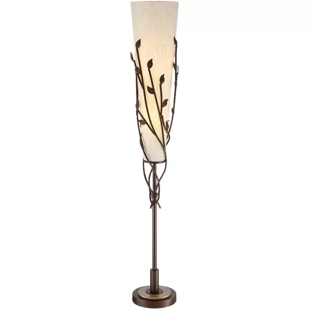 Incorporate a taste of nature into your decor with this pinecone torchiere featuring a base resembling the branches of a tree. The oxidized finish and Mission-Shaker style adds a little old-world charm, while the three-way design adds plenty of light.Care Instruction: Wipe clean with soft non abrasive clothBulb Base: E-27Style: LodgeNumber of Light: 1 LightBulb Wattage: 150 WShade Material: GlassLighting Type: Floor LampLamp Type: TorchiereMaterial: MetalLighting Style: Mission-ShakerFinish: OxidizedColor: OrangeDimensions: 16 inches long x 16 inches wide x 72 inches high