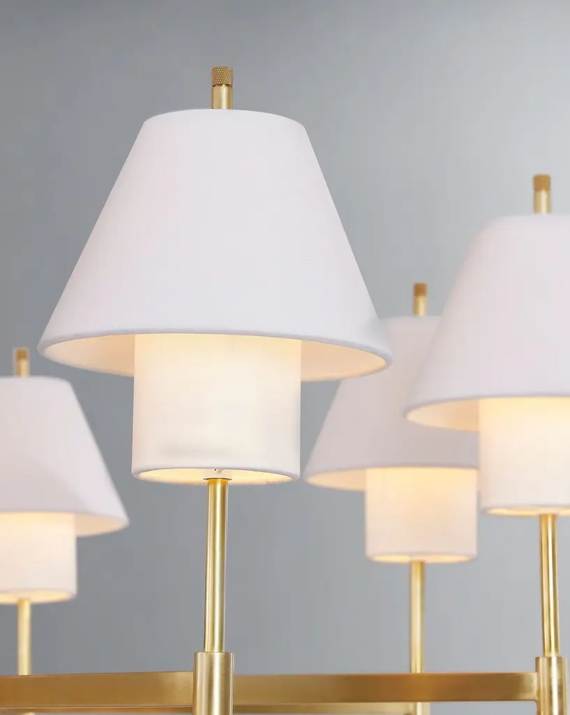 Glenmoore gives the classic shade on a stick a chic modern update. A sleek metal arm is the base for a tapered white linen shade with an elongated cylindrical shade set inside. This uniquely tailored detail extends light downward for a soft glow. Knurled accents add a touch of sophistication to this already refined design, available as a wall sconce, pendant, chandelier, and floor lamp in two elegant finishes.