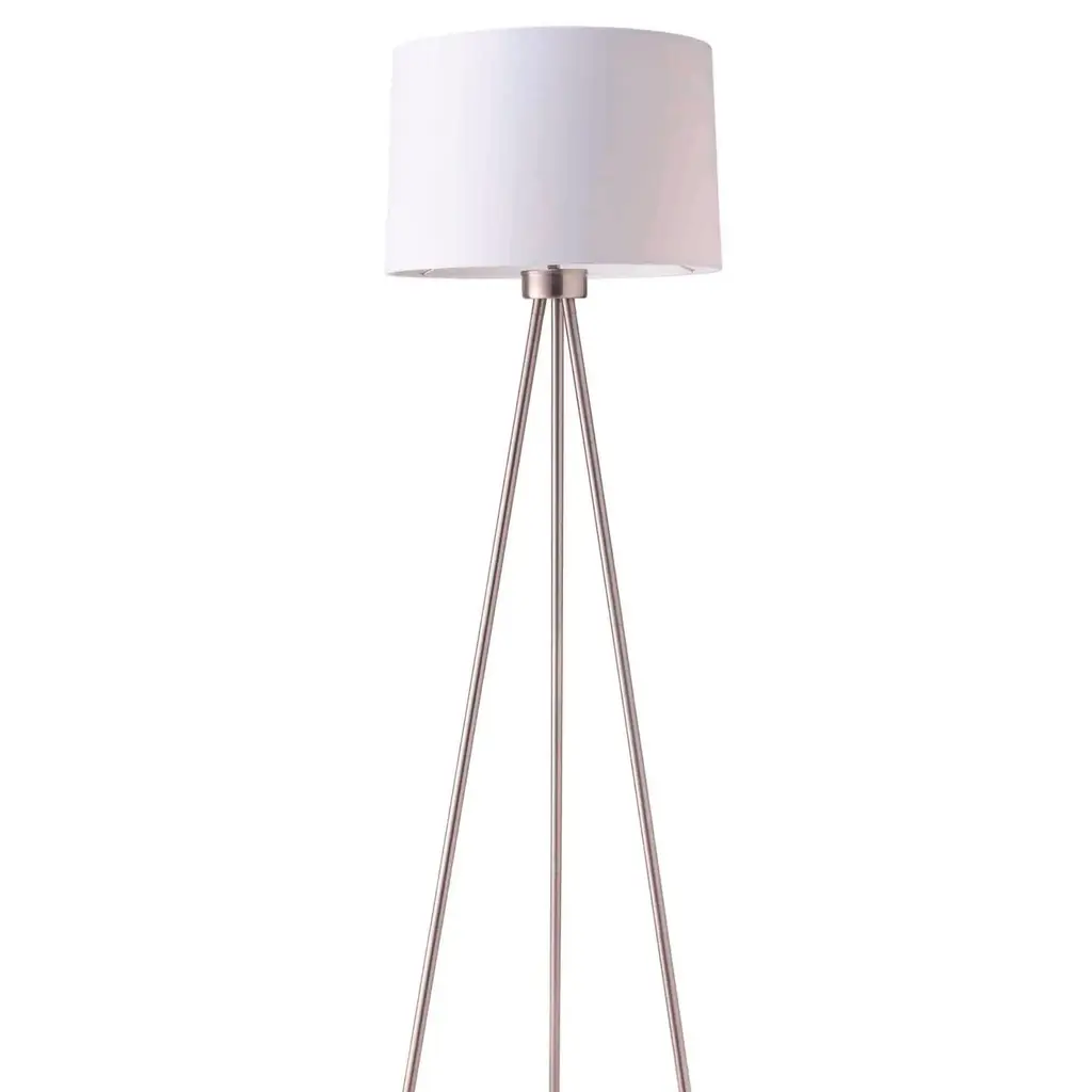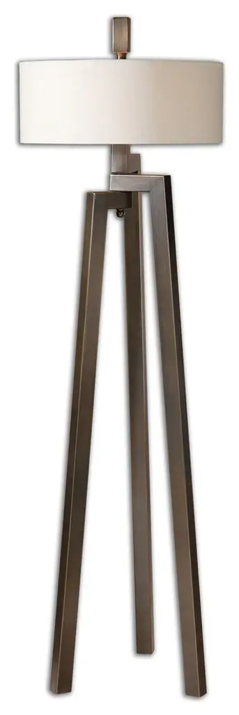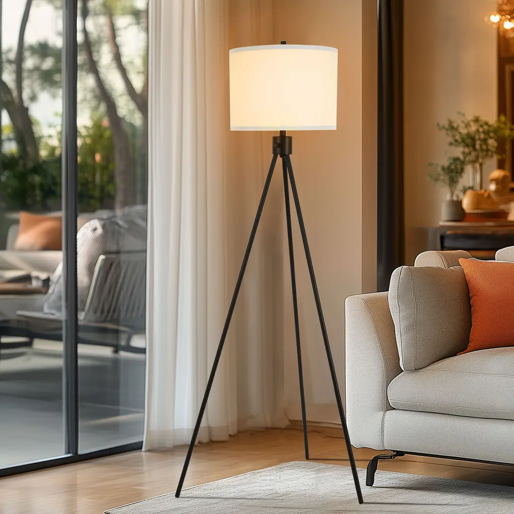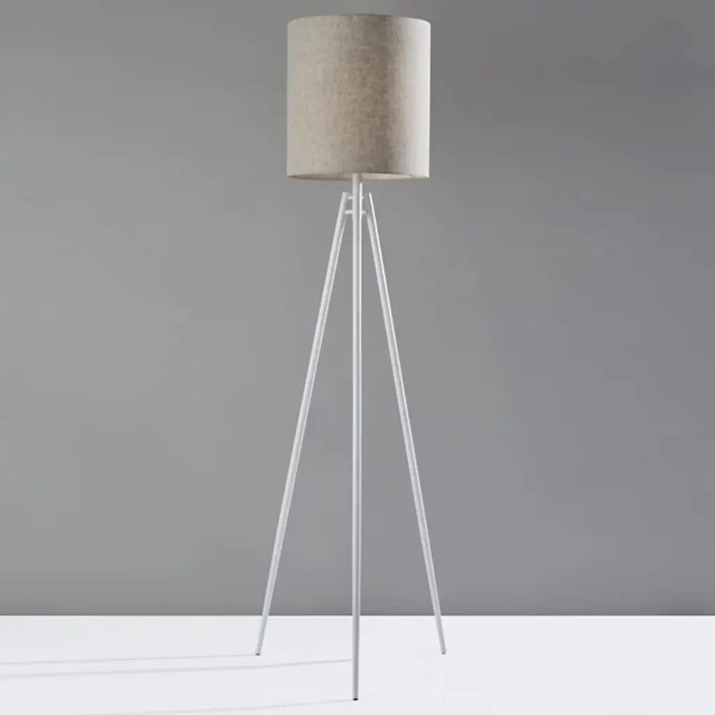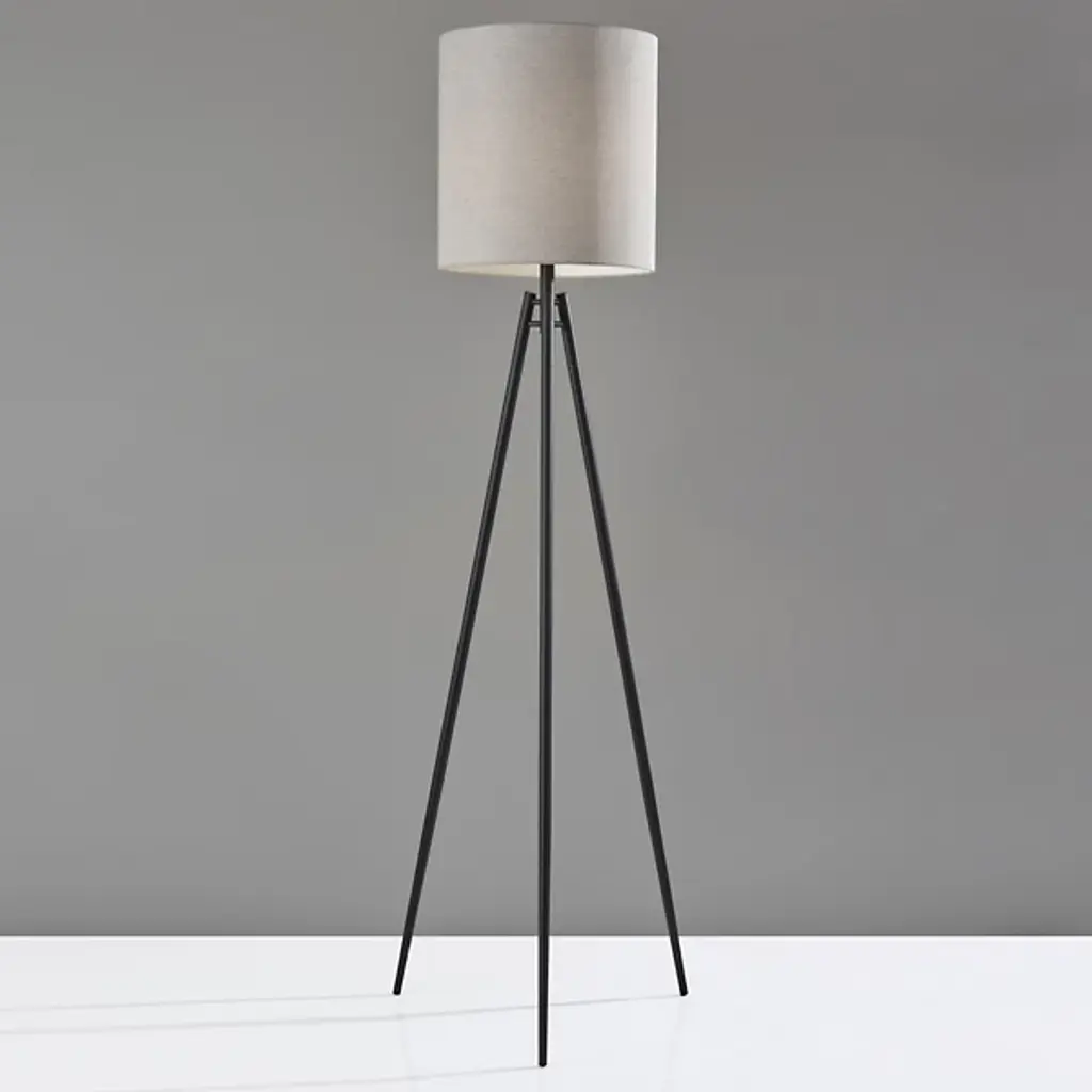 The Glenwood Floor Lamp from Adesso brings a contemporary style to the home with an elegant and anchoring tripod figure. The piece features 3 angular legs that converge to naturally point the eyes at the classic drum shade above. The shade’s textured fabric softly disperses light for minimal glare. Use the piece to complement décor through its trim and refined silhouette.