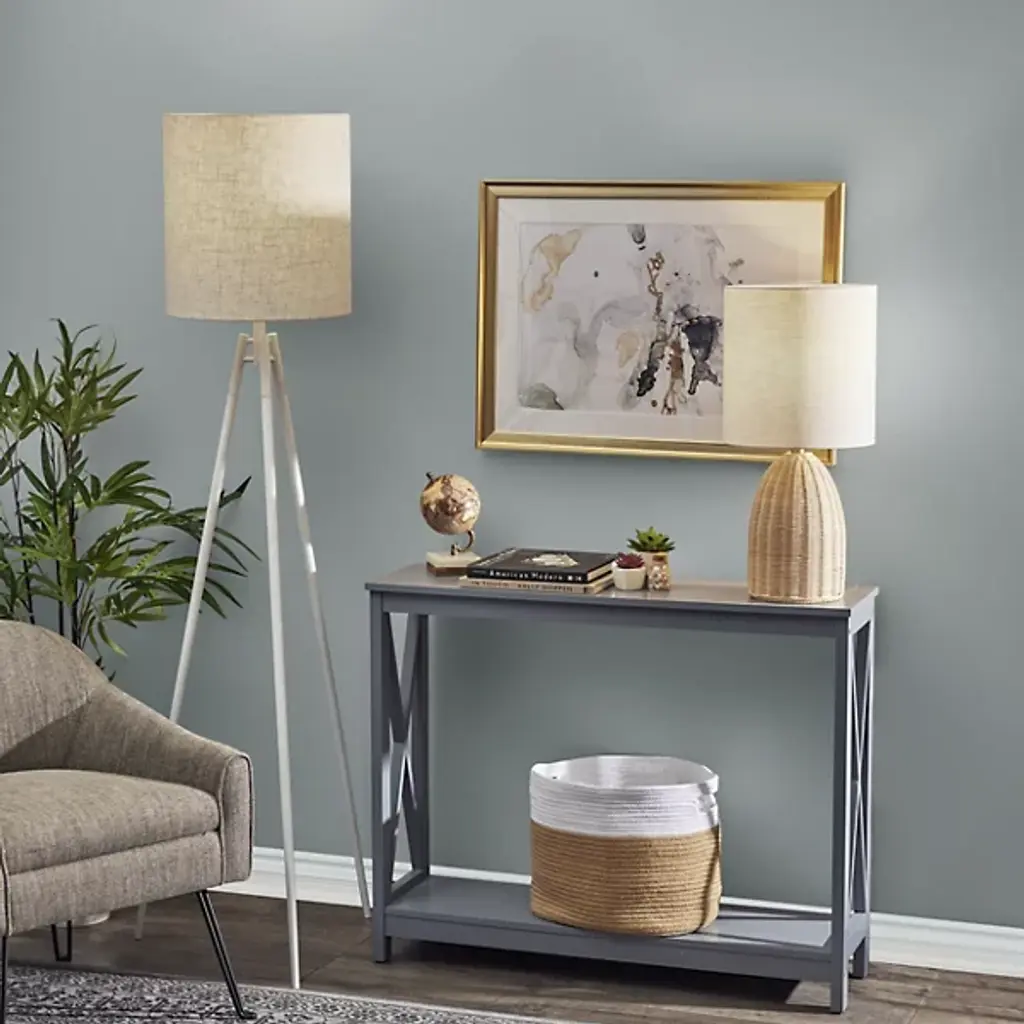 The Glenwood Floor Lamp from Adesso brings a contemporary style to the home with an elegant and anchoring tripod figure. The piece features 3 angular legs that converge to naturally point the eyes at the classic drum shade above. The shade’s textured fabric softly disperses light for minimal glare. Use the piece to complement décor through its trim and refined silhouette.