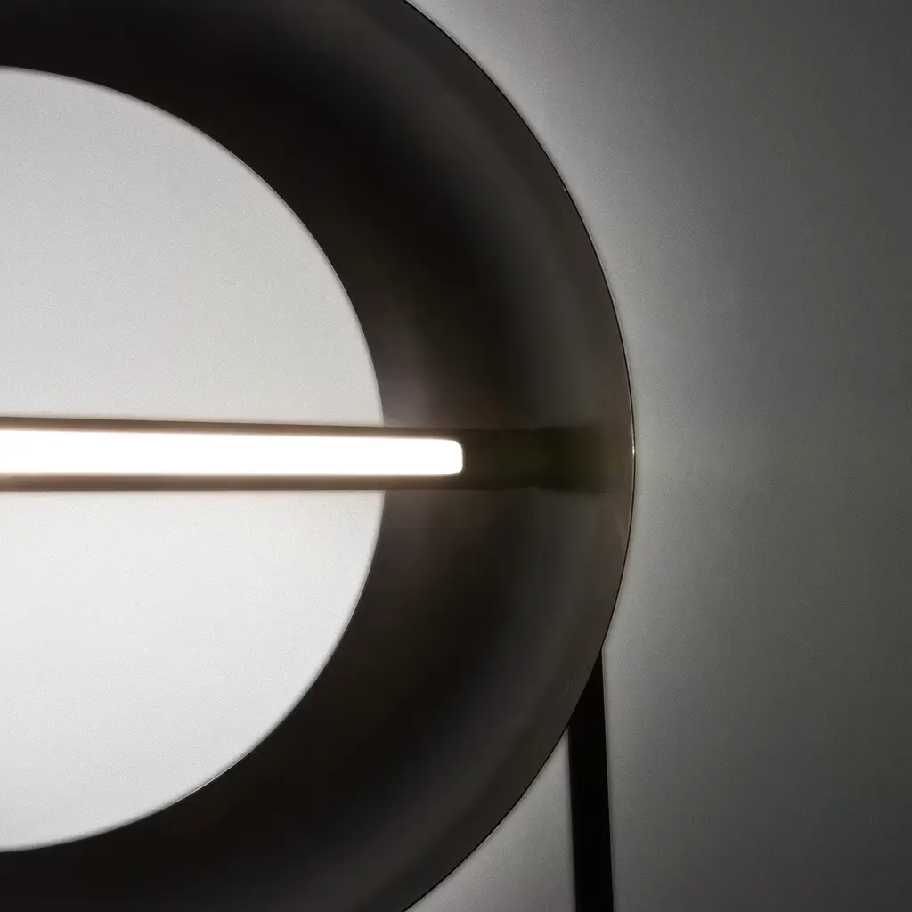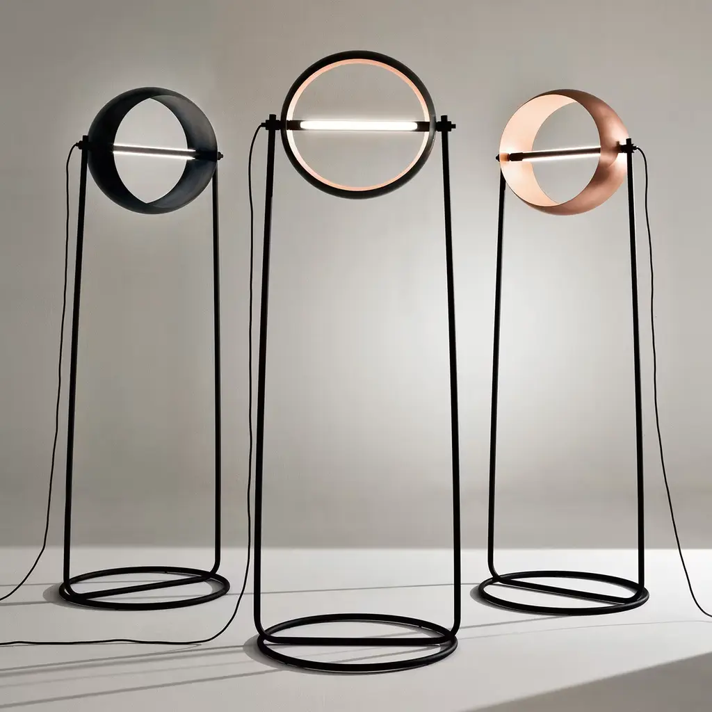 This remarkable, award-winning Globe floor lamp by Edoardo Colzani features an entirely hand-crafted black iron rotating lampshade, housing the 3000K LED light along with a finely sculpted metal base, all finished in black iron. A sophisticated yet highly functional design suitable for modern interior decors, this lamp is also available with a satin copper finish. Please contact the Concierge for further details.