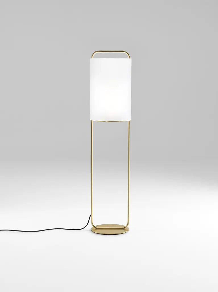 Golden Alistair P Floor Lamp by ParachilnaDimensions: D 30 x H 130 cmMaterials: Steel Structure, Opal matt glass diffuser. Weight: 9.9 kgALISTAIR P - GOLDEN MATTE - BLOWN GLASS DIFFUSERFormed by basic geometric shapes: circle base, squared structure and opal hand-blown glass cylindrical diffuser. This lamp is just elegant.About: They are based in Barcelona, a city with a rich design heritage. It is where Spanish design and many groundbreaking architects were born. They feel inspired by this history and strive to leave their own mark. Their headquarters are located in the industrial area of Colonia Güell. The layout was designed by Antoni Gaudí. During its golden age, it was a textile factory that employed more than 1,200 people. Today, many of the buildings are in decay, yet they retain their soul. There is a special energy in the space that is undoubtedly infused into Parachilna’s lamps.All our lamps can be wired according to each country. If sold to the USA it will be wired for the USA for instance.