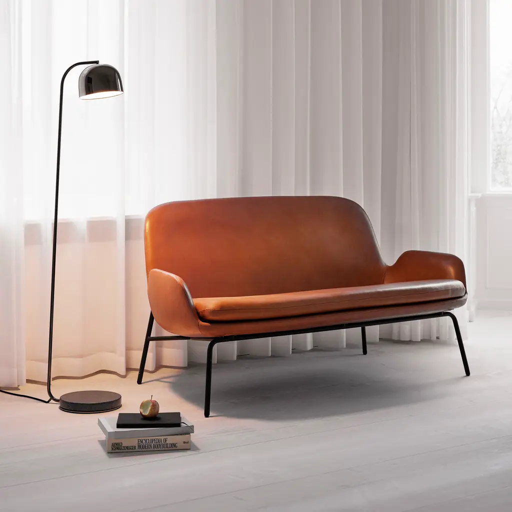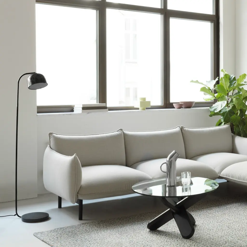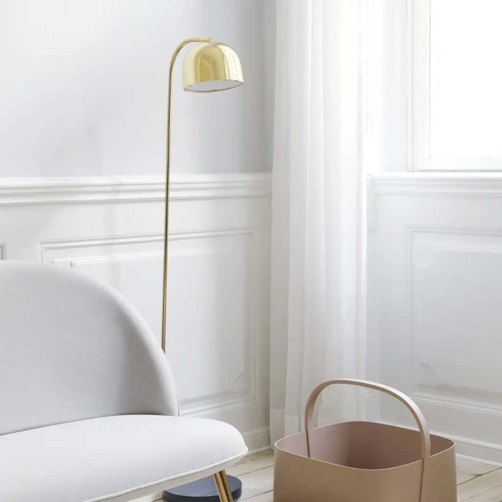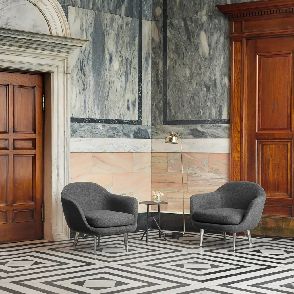 Ideal as a reading lamp or for lighting up dark corners, the floor version of Grant stands tall and slim, anchored by a tactile granite base. As with the rest of the series, designer Simon Legald’s striking polished-metal shade is fully adjustable in any direction via a ball-joint mechanism. Equipped with a dimmer switch, the replaceable LED light source features a dispersion lens to avoid glare and go from a soft glow to brighter illumination.