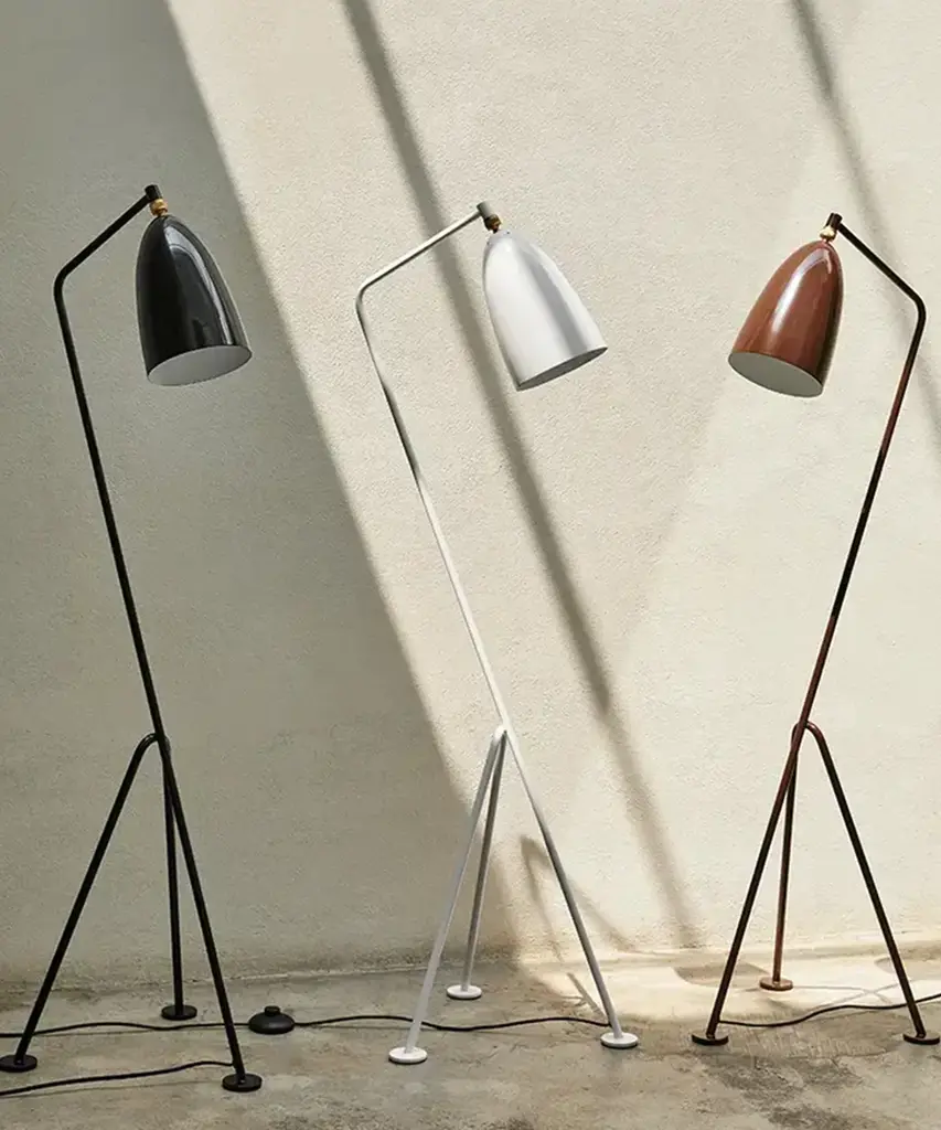 Designed by Greta Grossman in 1947, the Grasshopper Table Lamp is a true icon of modern design.Inspired by the elongated frame and elegance of its namesake, the Grasshopper lamp is Greta Grossman's most celebrated design. The angled stand and tripod legs create a beautifully sculptural form, eye-catching enough to anchor a room. The lamp's powder-coated steel shade is elongated, and can be adjusted to change the direction of light as needed.Today, the lamp is manufactured in Denmark by Gubi - a Copenhagen-based purveyor of both historic and contemporary design. Certified authentic and produced to Grossman's original specifications.