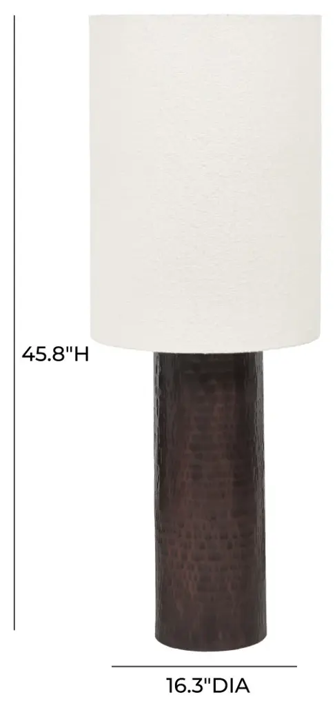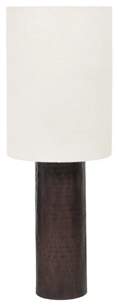 Experience the distinct allure of the Grava Boucle and Hammered Bronze Metal Floor Lamp, where craftsmanship meets contemporary design. Each lamp features a hand-hammered bronze base, uniquely crafted by skilled artisans to ensure no two are alike. Topped with a stylish Boucle shade, this floor lamp stands out as a modern statement piece that brings the latest trend right into your living space.- The hand-hammered metal base is done unique to every piece by skilled artisans. - Perfect for use in a bedroom, entryway or living room- Requires 1 Type A15 bulb with an E26 base - Not included- Max 9 watt LEDUL certified