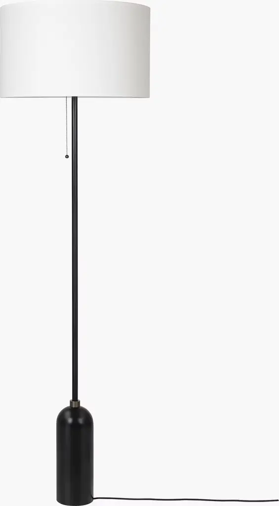 Expanding upon their successful Gravity Collection, Signe Bindslev Henriksen and Peter Bundgaard Rützou of Danish design studio Space Copenhagen created the Gravity Floor Lamp (2018). A study in cylindrical forms, it consists of a canvas drum shade anchored by a blackened steel base. Duality and contrast are hallmarks of Space Copenhagen's work - as evidenced by the lamp's juxtaposition of density and lightness. It's operated by a simple pull chain. Bulb not included. Made in China.