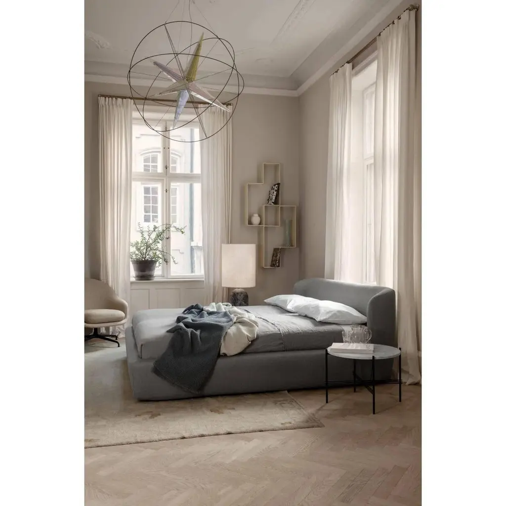 The Gravity XL Floor Lamp, designed by Space Copenhagen, is aesthetically contrasting strength and fragility. Taking its name from the lamp’s distinctive balance between the anchoring of the heavy, cylindrical base and the lightweight, airy shade, it beautifully merges into a sculptural whole. Blending understated elegance, clean functionality and effortless in its own succinct and simple way, the Gravity XL Floor Lamp gives an ambient and subtle light display and creates different moods and expressions depending on the choice of size and combination of materiality.MEASUREMENTS: Base: 51.2″ tallShade: 17.7″ diameter x 22.44″ tall