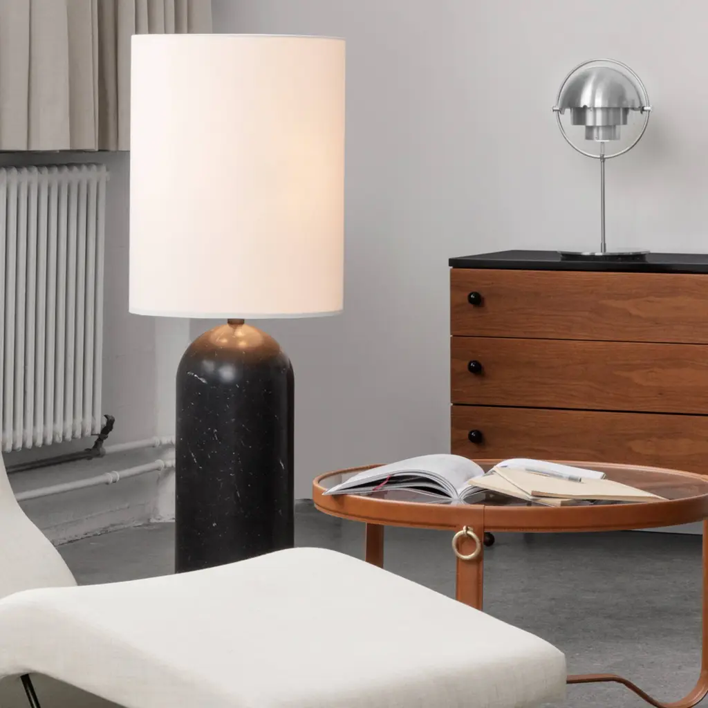 Gravity XL from Danish brand Gubi offers an almost surrealistic take on a floor lamp. Space Copenhagen designers Signe Bindslev Henriksen and Peter Bundgaard Rützou, contrast a weighty oversize base in luxe marble with an ethereal shade to suggest the inherent tension of strength versus fragility. An unabashedly sculptural addition to a room’s decor, the lamp also provides an exquisitely measured glow of illumination.