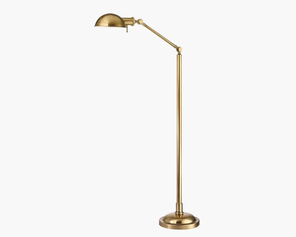With its functional beauty, the Graysen Floor Lamp makes a fine addition to any space. A metal shade directs light towards the task area and shields eyes from glare, while the double-hinged arm allows ample adjustment of the lighting space. Overall dimensions: 56"h. Weight: 15 lbs Body Material: Steel Switch Type: Pull Chain on Socket with Plug Light Bulb Type: E26 Medium Base Bulb Included: No Assembly Required Receives Fedex delivery