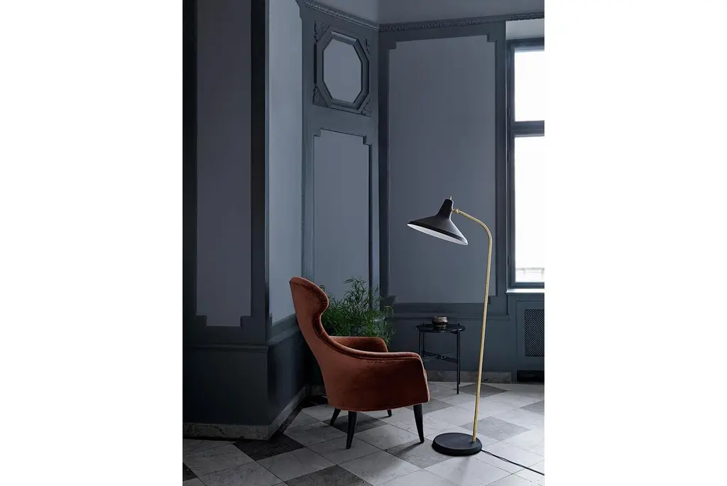 The G-10 floor lamp, designed in 1950 by the icon Greta M. Grossman, is another of her undiscovered designs. The lamp is characterised by its distinctive lampshade, giving the space a pleasant light, as well as its rough surface and contrasting polished brass details, which are all defining the lamp’s unique look. The G-10 Floor Lamp has a refined luxurious charm combined with an industrial character, which gives an expression of being a classic yet contemporary design.The G-10 lamp was produced, as many of Grossman’s other work, in both America and her native Sweden, where this collection draws its features after the Swedish version. The lamp was Greta M. Grossman’s 10th product for the Swedish manufacturer Bergboms, therefore the name G-10.The shade can be tilted. The textile cord is black on all models. Switch on cord.