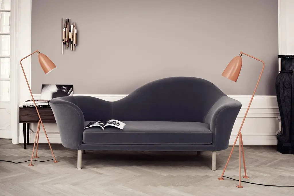 The iconic Grasshopper Floor Lamp was first produced in 1947 by the feminine pioneer Greta M. Grossman. The unique tripod stand of the Grasshopper Floor Lamp is tilted backward and gives the impression that the lamp is somehow alive and stalking its prey. Being one of Grossman’s most iconic designs, the authentic lamp has an elongated conical shade that rotates to direct light where needed.The shade can be tilted and rotated 360°. Textile cord is white on the matte white model, and is black on all other models. Switch on cord.