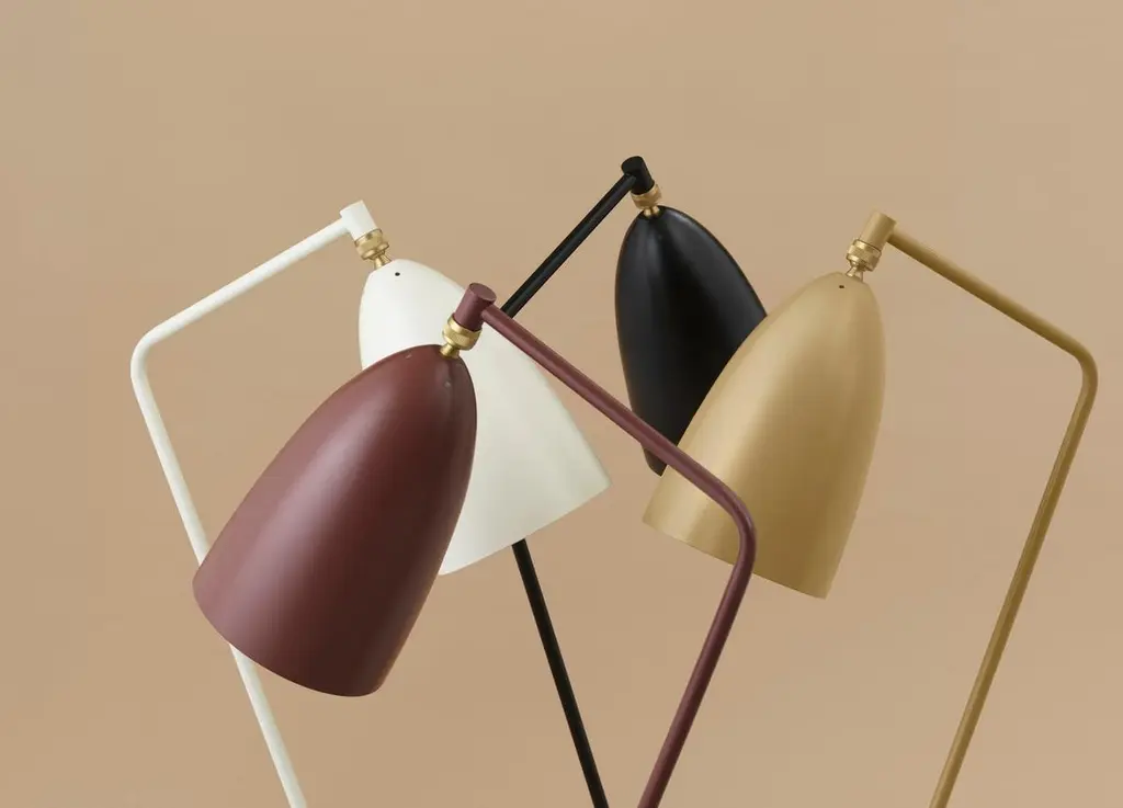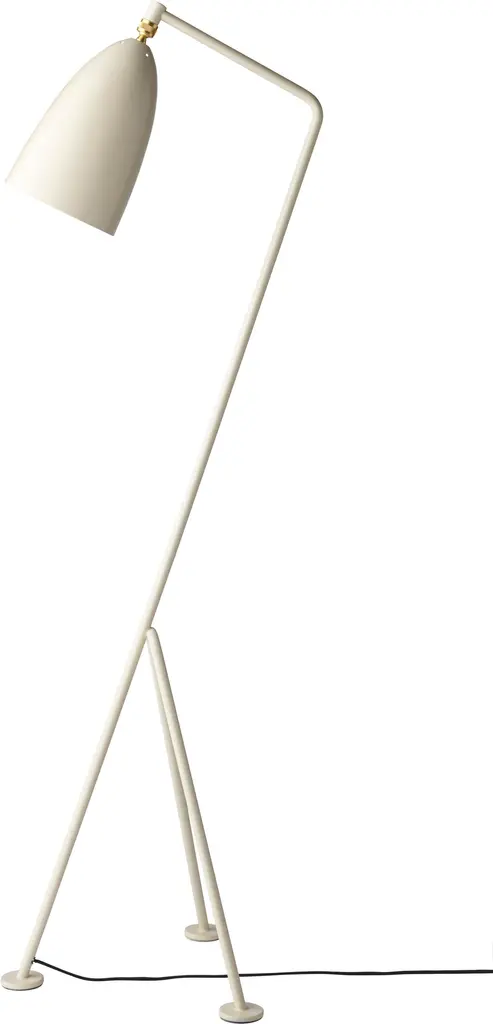 Greta Magnusson Grossman 'Grasshopper' Floor Lamp in Glossy Black for GUBIDesigned in 1947 by Grossman, this is an authorized re-edition by GUBI of Denmark-- a meticulous reproduction of her work with scrupulous attention to detail and materials that are faithful to the original specifications.The 'Grasshopper' floor lamp is executed in powder-coated tubular steel frame, aluminum shade, solid brass hardware, and fabric-covered cord, this ultra-refined design adds a sculptural element and focal point to any interior.Price is per item. Available in unlimited quantities in your choice of 9 colors: Alabaster White Glossy, Anthracite Grey, Black Glossy, Black Semi Matte, Dusty Blue Semi Matte, Olive Brown, Vintage Red Semi Matte, Walnut Brown Glossy and Warm Grey Semi Matte. Also available in a table lamp version in a separate listing. This listing is for the 'Grasshopper' floor lamp in glossy black. In-stock lead time 1-2 weeks. Out of stock lead time can add additional 8 weeks or more. For time-sensitive orders, please inquire about availability prior to purchasing. Please note that this item must drop-ship from GUBI's Chicago facility, so local pick-up is not an option.Accommodates a single E12 bulb (4-6W LED), not included. IP20 listed. Ships with approx. 8' of black textile cord.Designer and architect Greta Magnusson Grossman first gained fame in her native Sweden, where she established her store and workshop and was the first woman to earn a prize for furniture design from the Swedish Society of Industrial Design. In 1940, she married jazz musician Billy Grossman and moved to Los Angeles, where she opened the Magnusson Grossman Studio on Rodeo Drive and rapidly became popular among the Hollywood elite. Combining her Scandinavian roots with laid-back West Coast style, Magnusson Grossman became a notable contributor to California modernism.Made to order.All sales final.