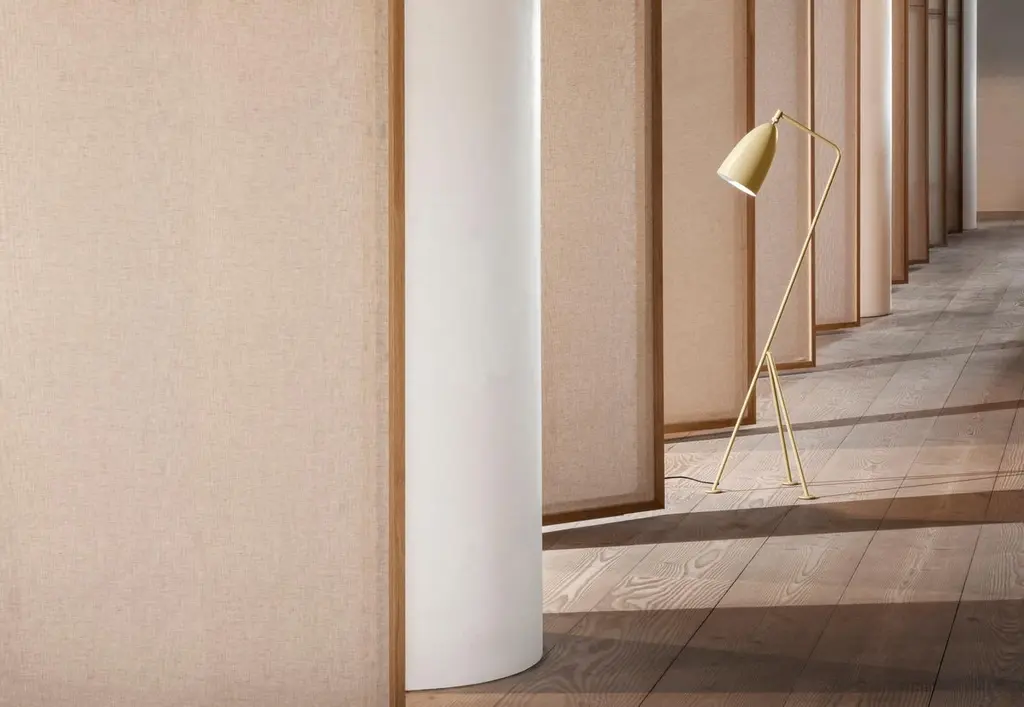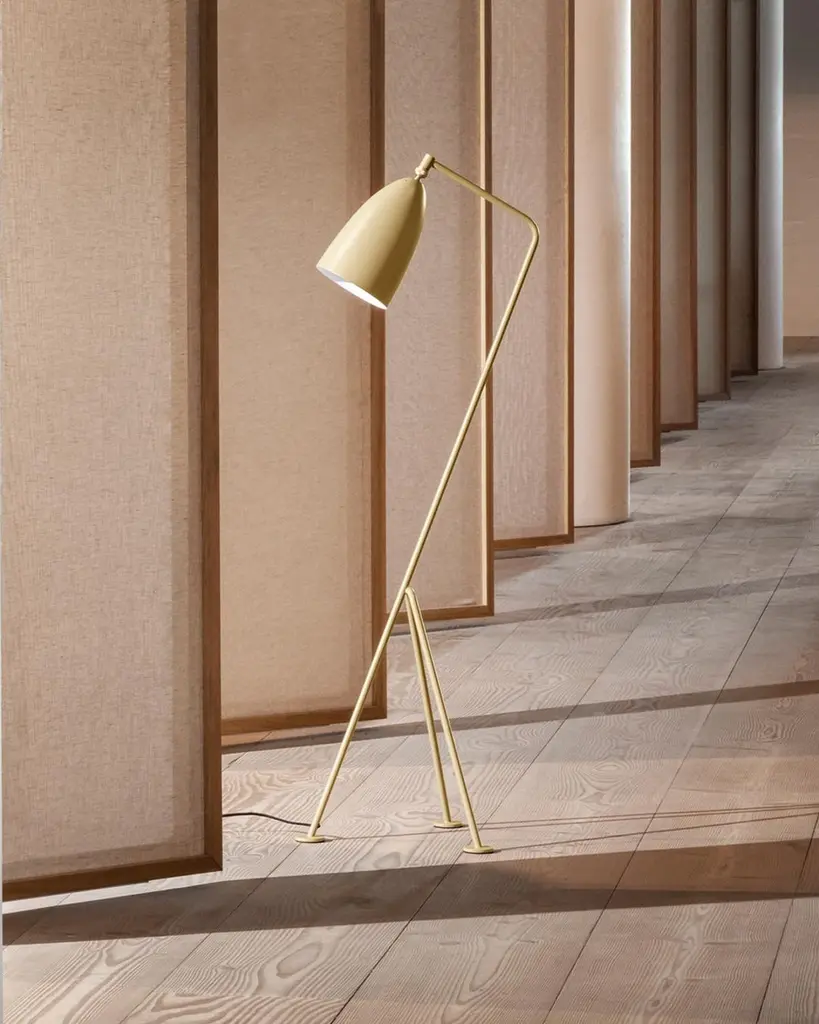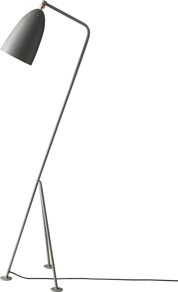 Greta Magnusson Grossman 'Grasshopper' Floor Lamp in Olive Brown for GUBIDesigned in 1947 by Grossman, this is an authorized re-edition by GUBI of Denmark-- a meticulous reproduction of her work with scrupulous attention to detail and materials that are faithful to the original specifications.The 'Grasshopper' floor lamp is executed in powder-coated tubular steel frame, aluminum shade, solid brass hardware, and fabric-covered cord, this ultra-refined design adds a sculptural element and focal point to any interior.Price is per item. Available in unlimited quantities in your choice of 9 colors: Alabaster White Glossy, Anthracite Grey, Black Glossy, Black Semi Matte, Dusty Blue Semi Matte, Olive Brown, Vintage Red Semi Matte, Walnut Brown Glossy and Warm Grey Semi Matte. Also available in a table lamp version in a separate listing. This listing is for the 'Grasshopper' floor lamp in Olive Brown. In-stock lead time 1-2 weeks. Out of stock lead time can add additional 8 weeks or more. For time-sensitive orders, please inquire about availability prior to purchasing. Please note that this item must drop-ship from GUBI's Chicago facility, so local pick-up is not an option.Accommodates a single E12 bulb (4-6W LED), not included. IP20 listed. Ships with approx. 8' of black textile cord.Designer and architect Greta Magnusson Grossman first gained fame in her native Sweden, where she established her store and workshop and was the first woman to earn a prize for furniture design from the Swedish Society of Industrial Design. In 1940, she married jazz musician Billy Grossman and moved to Los Angeles, where she opened the Magnusson Grossman Studio on Rodeo Drive and rapidly became popular among the Hollywood elite. Combining her Scandinavian roots with laid-back West Coast style, Magnusson Grossman became a notable contributor to California modernism.Made to order.All sales final.