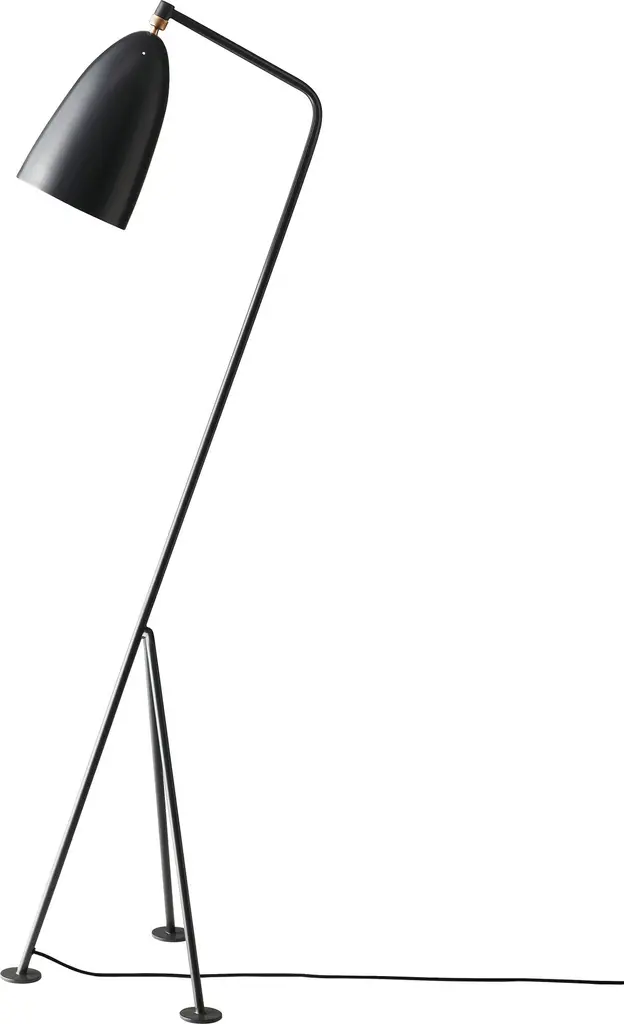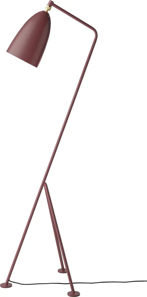 Greta Magnusson Grossman 'Grasshopper' Floor Lamp in Warm Grey for GUBI Designed in 1947 by Grossman, this is an authorized re-edition by GUBI of Denmark-- a meticulous reproduction of her work with scrupulous attention to detail and materials that are faithful to the original specifications.The 'Grasshopper' floor lamp is executed in powder-coated tubular steel frame, aluminum shade, solid brass hardware, and fabric-covered cord, this ultra-refined design adds a sculptural element and focal point to any interior.Price is per item. Available in unlimited quantities in your choice of 9 colors: Alabaster White Glossy, Anthracite Grey, Black Glossy, Black Semi Matte, Dusty Blue Semi Matte, Olive Brown, Vintage Red Semi Matte, Walnut Brown Glossy and Warm Grey Semi Matte. Also available in a table lamp version in a separate listing. This listing is for the 'Grasshopper' floor lamp in warm grey. In-stock lead time 1-2 weeks. Out of stock lead time can add additional 8 weeks or more. For time-sensitive orders, please inquire about availability prior to purchasing. Please note that this item must drop-ship from GUBI's Chicago facility, so local pick-up is not an option.Accommodates a single E12 bulb (4-6W LED), not included. IP20 listed. Ships with approx. 8' of black textile cord.Designer and architect Greta Magnusson Grossman first gained fame in her native Sweden, where she established her store and workshop and was the first woman to earn a prize for furniture design from the Swedish Society of Industrial Design. In 1940, she married jazz musician Billy Grossman and moved to Los Angeles, where she opened the Magnusson Grossman Studio on Rodeo Drive and rapidly became popular among the Hollywood elite. Combining her Scandinavian roots with laid-back West Coast style, Magnusson Grossman became a notable contributor to California modernism.Made to order.All sales final.