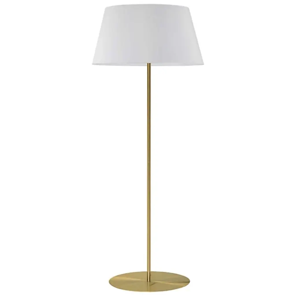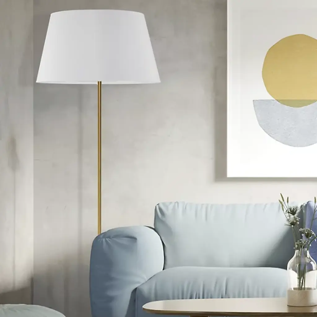 Meet the Gretchen Round Base Floor Lamp by Dainolite. Crafted from metal and fabric, this floor lamp radiates a transitional style that is sure to enhance any room it is placed in. Perfect for your office, bedroom, or living room, this fixture will add both functionality and flair. With a gorgeous tapered drum shade and an easy-to-use On/Off foot switch, the Gretchen Floor Lamp effortlessly combines practical illumination with a touch of elegance. In addition, its plug-in system provides ease of use and flexibility, while its 8ft cord gives you a wide range of placement options.