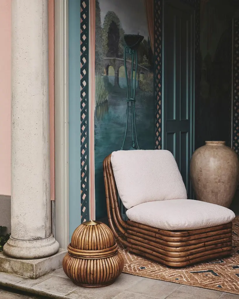 Comprising a lounge chair, three-seater sofa, ottoman and floor lamp – all crafted from rattan – the Bohemian 72 Collection embodies Crespi’s career-long aim to create furniture that seamlessly unites indoor and outdoor living. She never allowed curtains or screens to block the natural flow of light or air and had what her daughter has described as ‘a deep sentiment for the cosmic energy of nature’.Designed to move as easily between indoor and outdoor spaces as we do, GUBI’s new transterior furniture and lighting features the aesthetic of Gabriella Crespi’s refined Bohemian ’72 Collection loved by the stars of stage and screen. GUBI adds dynamism to GamFratesi’s TS Table and Bill Curry’s innovative Obello Lamp, reinventing them as portable accessories that follow us wherever we go, bringing the look and feel of the indoors outside.Cord Length: 200 cmGross Depth (Meter): 0,48Gross Height (Meter): 0,48Gross Length (Meter): 0,48Gross Weight (Kg): 8Lamp Height: 45cmLight Bulb Socket: EU – E27 (Bulb not included)Lumen Watt Recommended: 810 Lumen (= 8W-10W LED Dimmable)Net Weight (kg): 4,85Shade Dimensions: ø 37 cm.