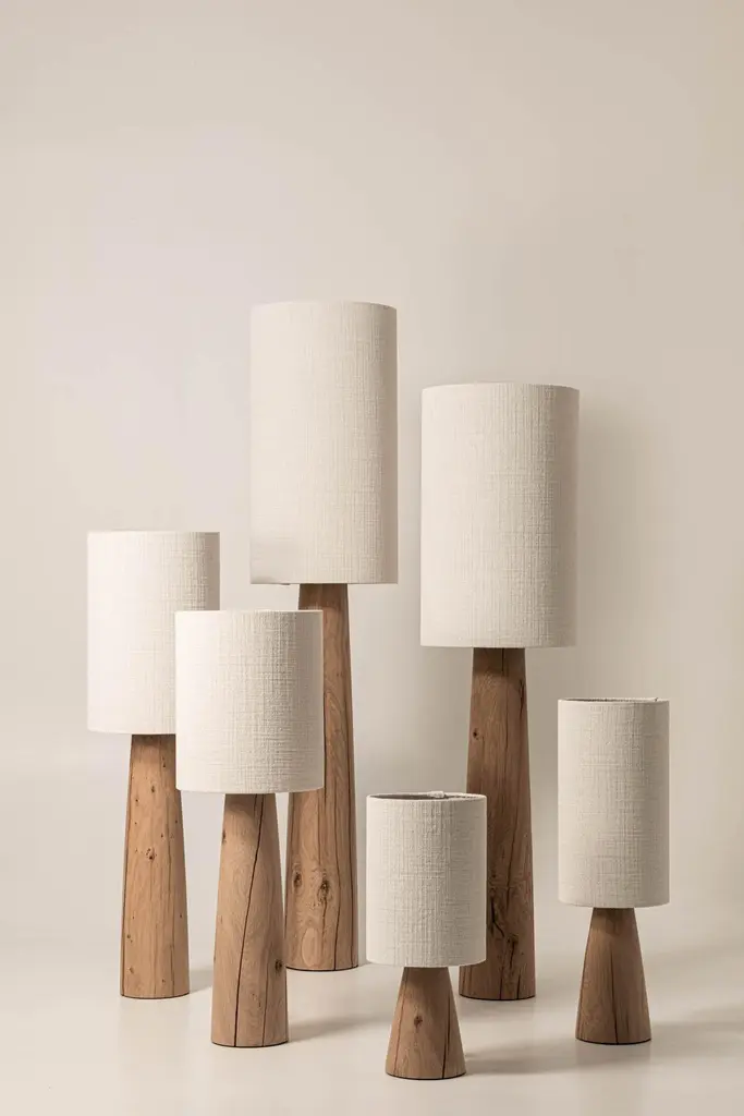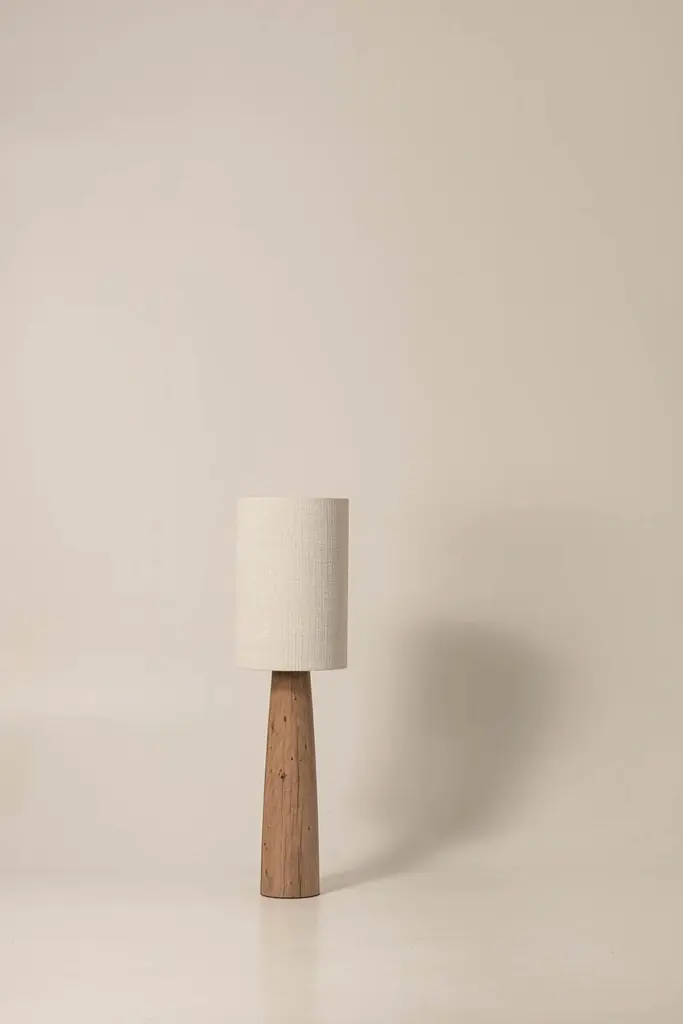 Guma FL4L lamp by Jeroen De RuddereDimensions: D 33 x H 120 cmCord Lenght: 175 cmDimmable: YesMaterials: Oak Brutal nature and textile.All pieces are CE certified.Each lamp is handmade so the measurements may differ minimally.