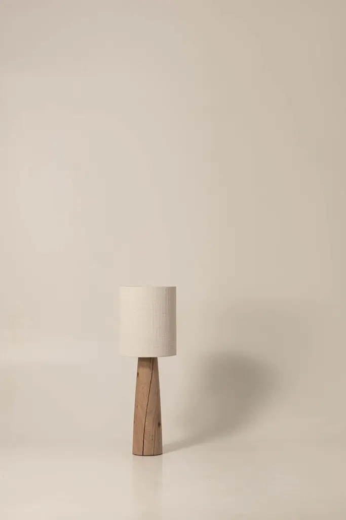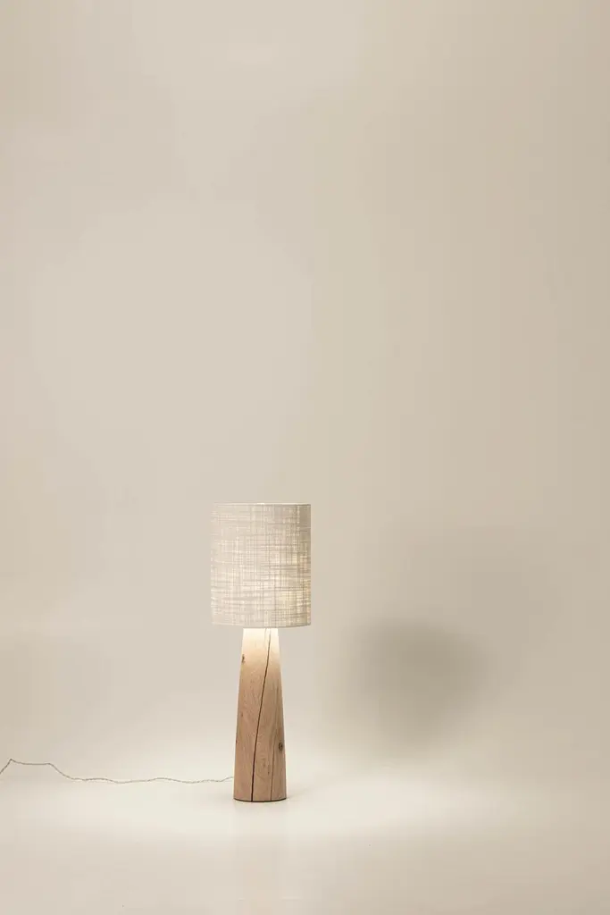 Guma FL4M lamp by Jeroen De RuddereDimensions: D 33 x H 100 cmCord Lenght: 175 cmDimmable: YesMaterials: Oak Brutal nature and textile.All pieces are CE certified.Each lamp is handmade so the measurements may differ minimally.