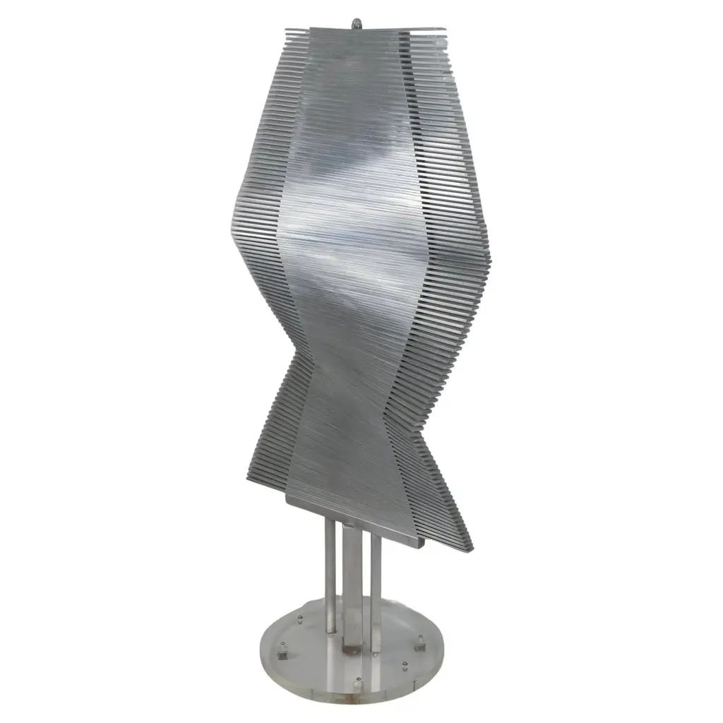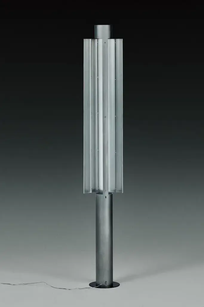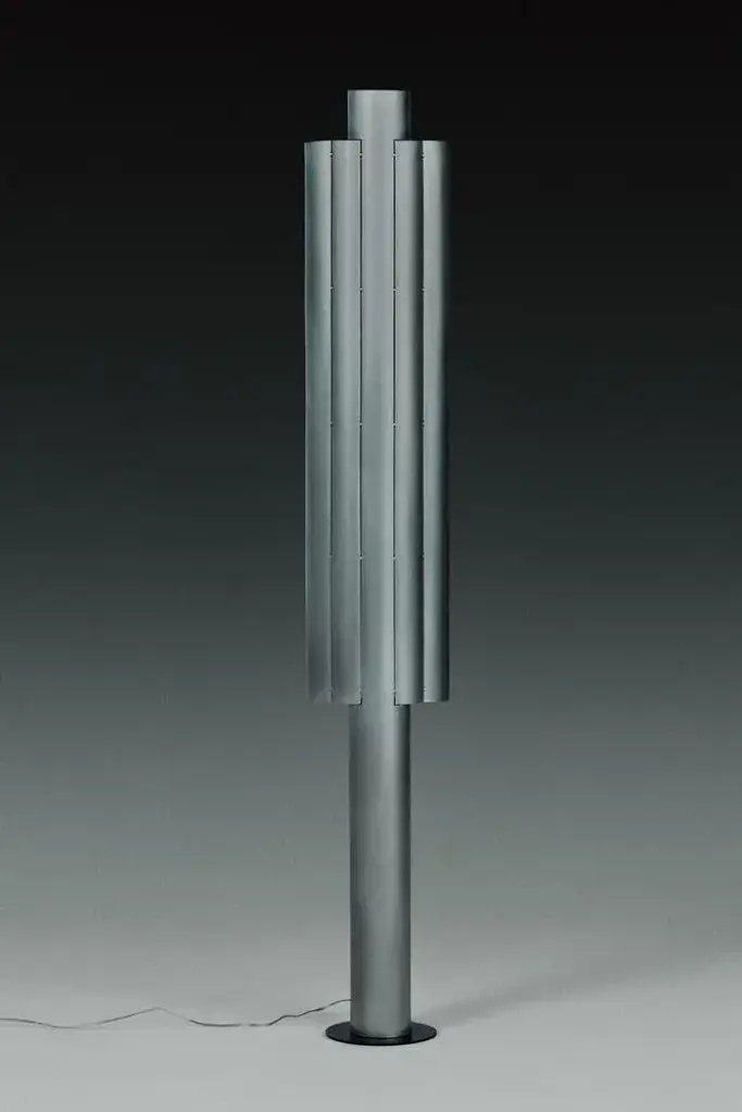 Gvpo floor lamp by kutarq studio materials: aluminum. Dimensions: d 21 x w 16 x h 135 cm customized lengths are possible. Matt aluminum, patinated by hand, 3d printed pla base (silver or black). Lightsource: 2 x parallel warm led stripes, ip20 24v 14,4w/m - 72w 2700k, dimmable. the gvpo lighting collection emphasizes the industrial process and the natural properties of aluminum. The luminaires are reduced to the bare minimum: made from a single pipe, lasercut, then bent and patinated by hand. A double warm led track is hidden under the aluminum section, allowing for smooth, indirect light to illuminate living spaces with radial reflections. the gvpo collection is the perfect balance of modern technology and exquisite craftsmanship. The fixtures are dimmable and come in different iterations and dimensions. The lamps reveal the charm of raw aluminum, perfectly paired with the latest led technology that significantly reduces heat dissipation. this piece is attributed to the mentioned designer/maker. It has no attribution mark and no official proof of authenticity, however it is well documented in design history. I take full responsibility for any authenticity issues arising from misattribution, up to 250v (europe/uk standard).