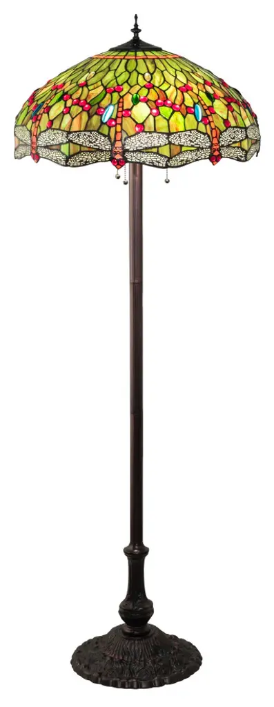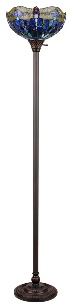Style your traditional space with the Hailey floor lamp. The bronze-finished metal frame is paired with a hand-cut stained glass shade, detailed with a dragonfly design. Choose from three colors to complement your classic decor. Features:Assembly Required. Note: Shade colors will appear darker and less vibrant when not illuminated. The handcrafted nature of this product creates variations in color, size and design. If buying two of the same item, slight differences should be expected.