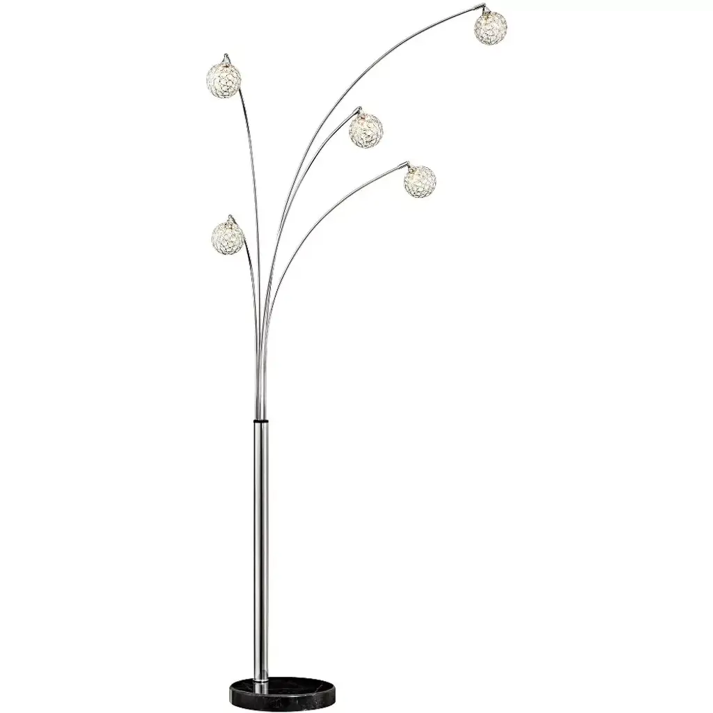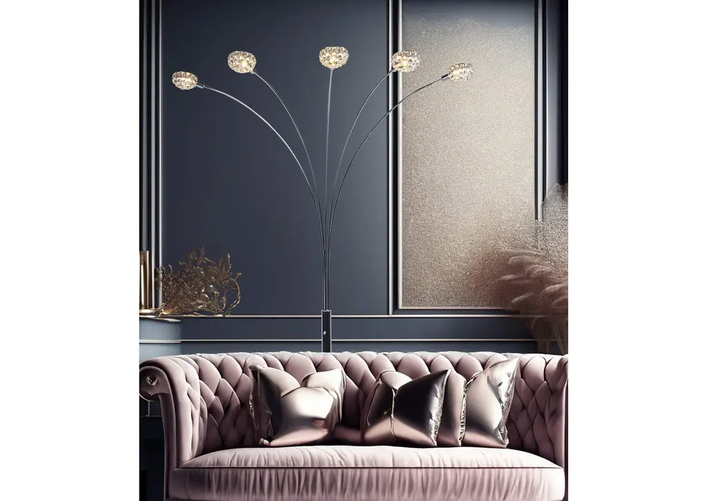 Illuminate your living space with our contemporary and sleek multi-head floor lamp, the perfect blend of style and functionality. With its radiant crystal-encrusted lamp heads that cascade gracefully on sleek metallic stems, this floor lamp is a true statement piece that combines modern design with classic luxury. Weight 29.320 lbs. (13.19kgs.)