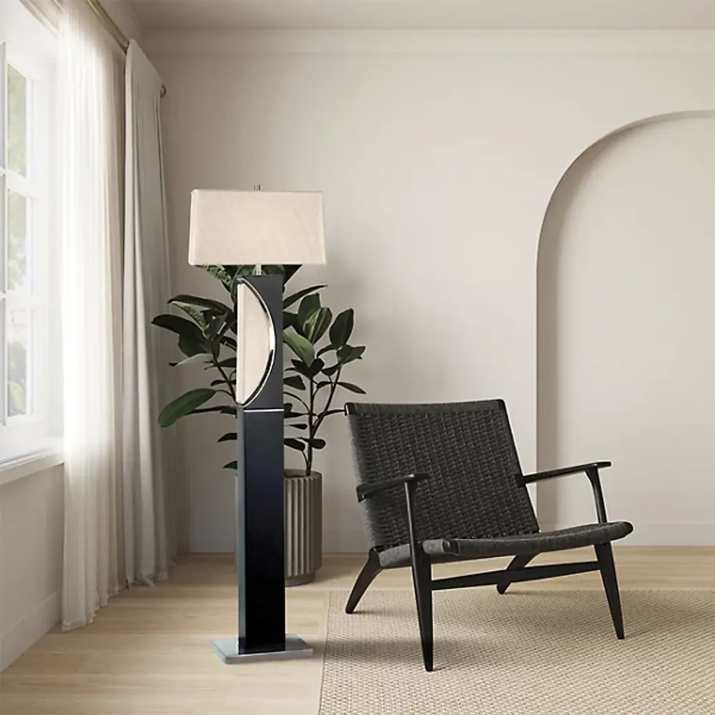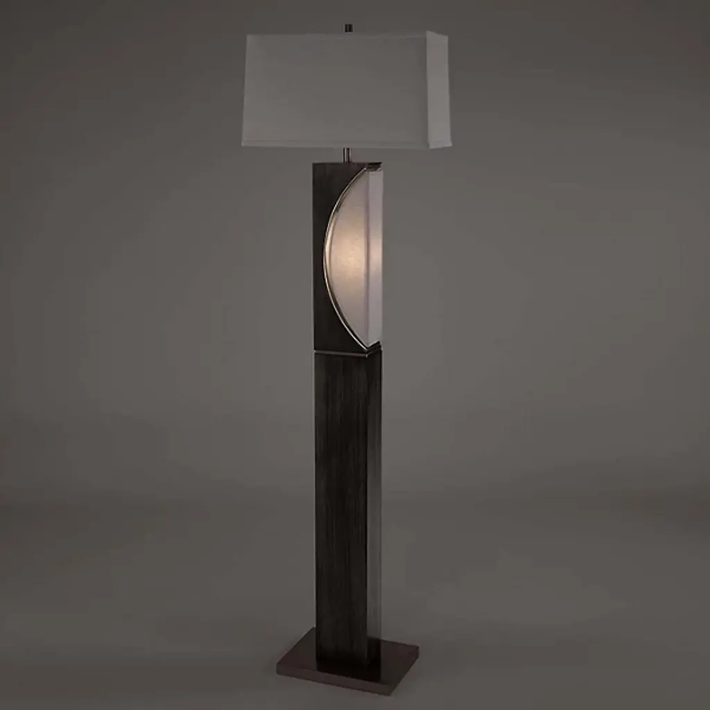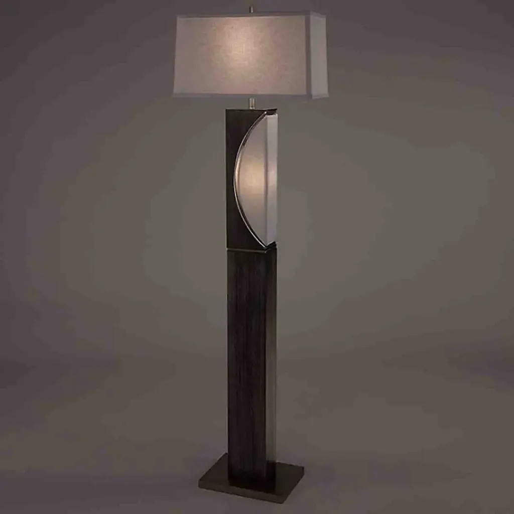 The Half Moon Floor Lamp by Nova of California is a lovely addition to spaces that pays homage to its lunar namesake. A tall, rectangular body that is set on a square base reaches up to support a crisp linen shade. Near the top of this column, a minimal, half-moon cut-out adds a dynamic, almost geometric touch to this floor lamp. Simple and elegant, this design is a handsome way to bring a decorative touch and soft layer of illumination to its surroundings.