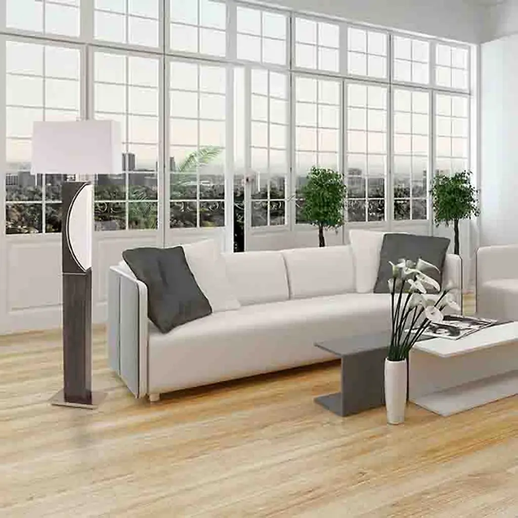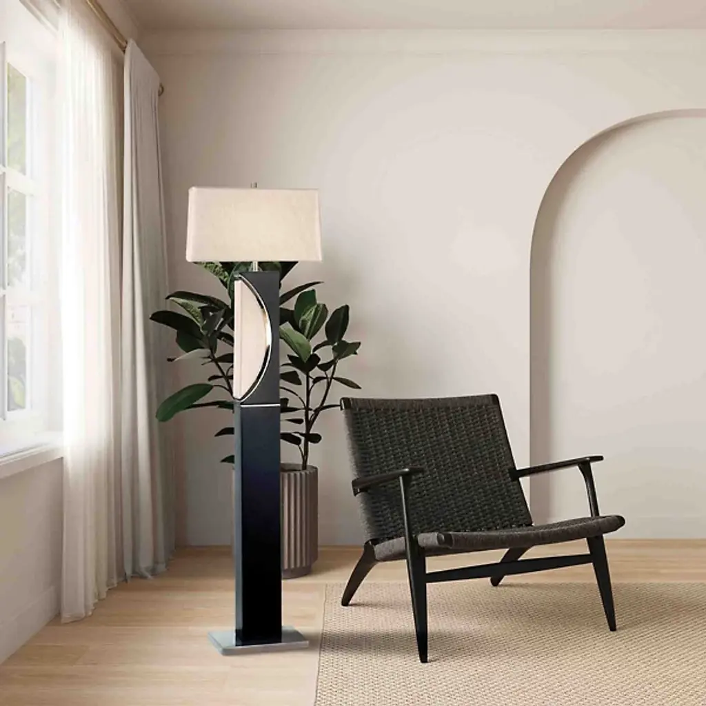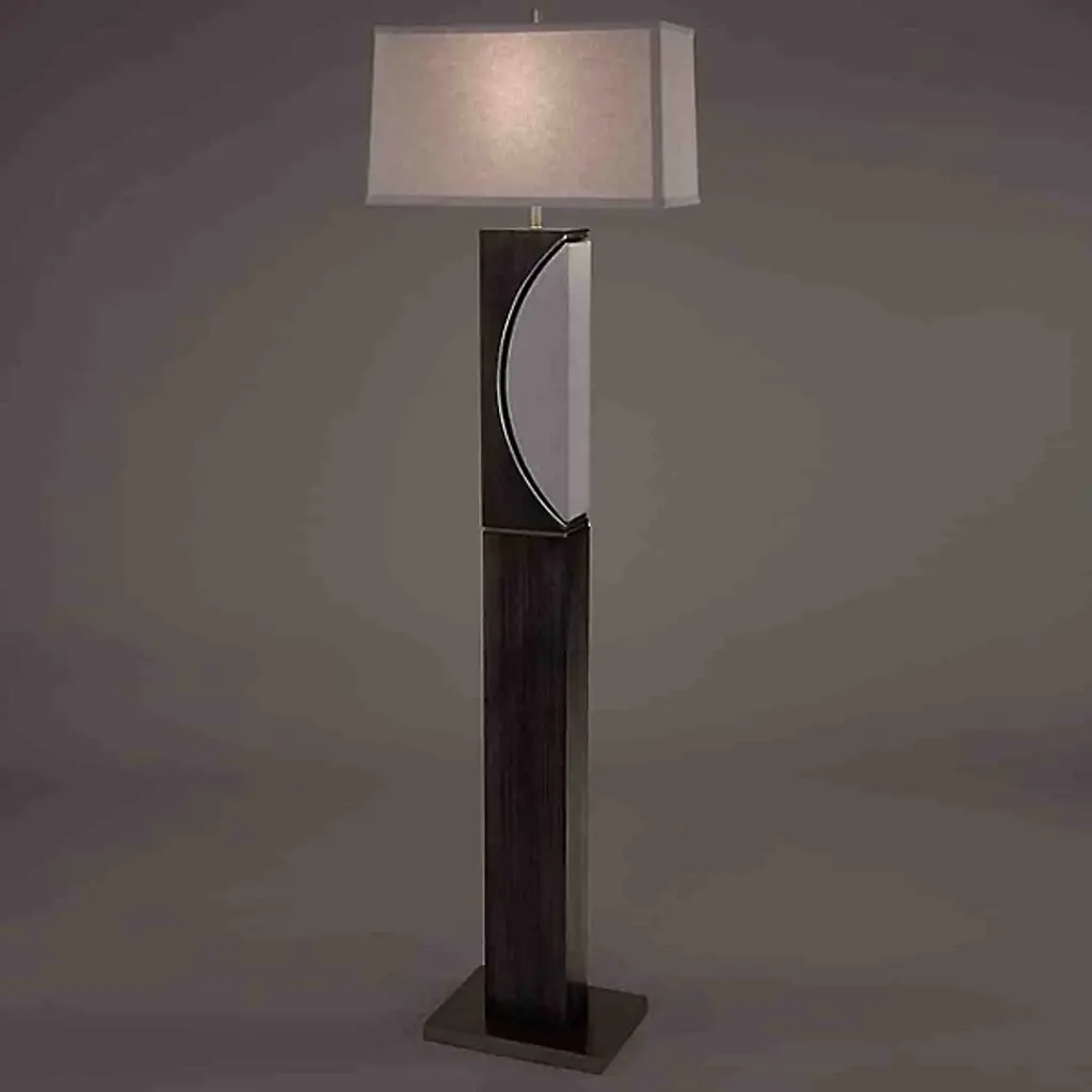 The Half Moon Floor Lamp by Nova of California is a lovely addition to spaces that pays homage to its lunar namesake. A tall, rectangular body that is set on a square base reaches up to support a crisp linen shade. Near the top of this column, a minimal, half-moon cut-out adds a dynamic, almost geometric touch to this floor lamp. Simple and elegant, this design is a handsome way to bring a decorative touch and soft layer of illumination to its surroundings.