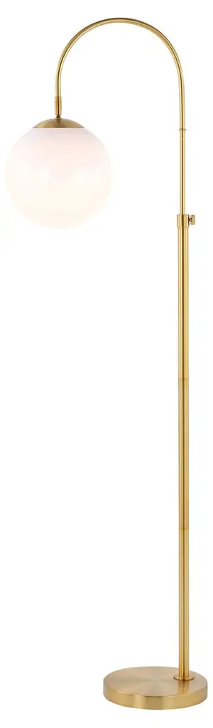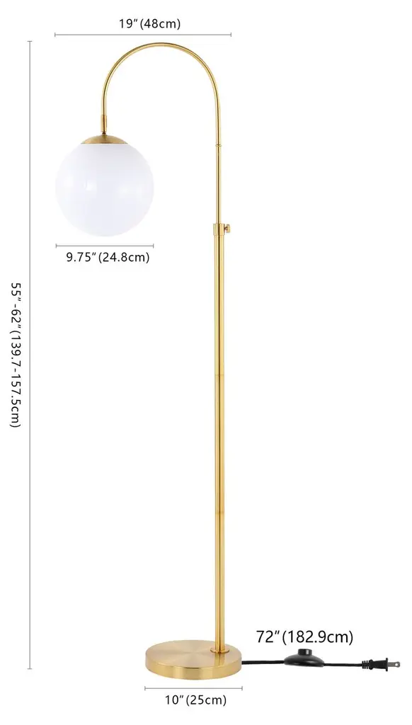 Reminiscent of Parisian bistro lighting, this floor lamp pairs a gleaming brass body with a white glass globe shade. It adjusts in height from 55 to 62 inches, making it versatile as well as chic.