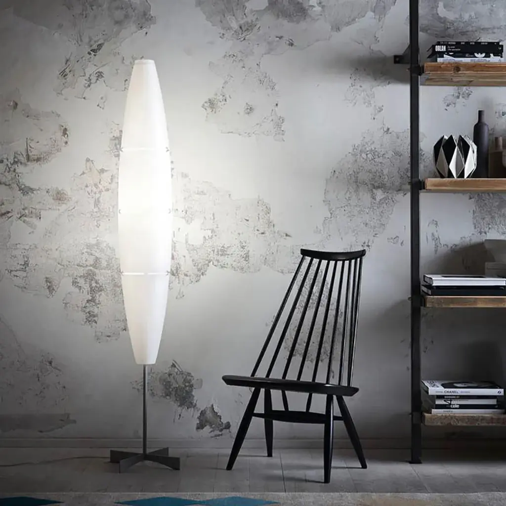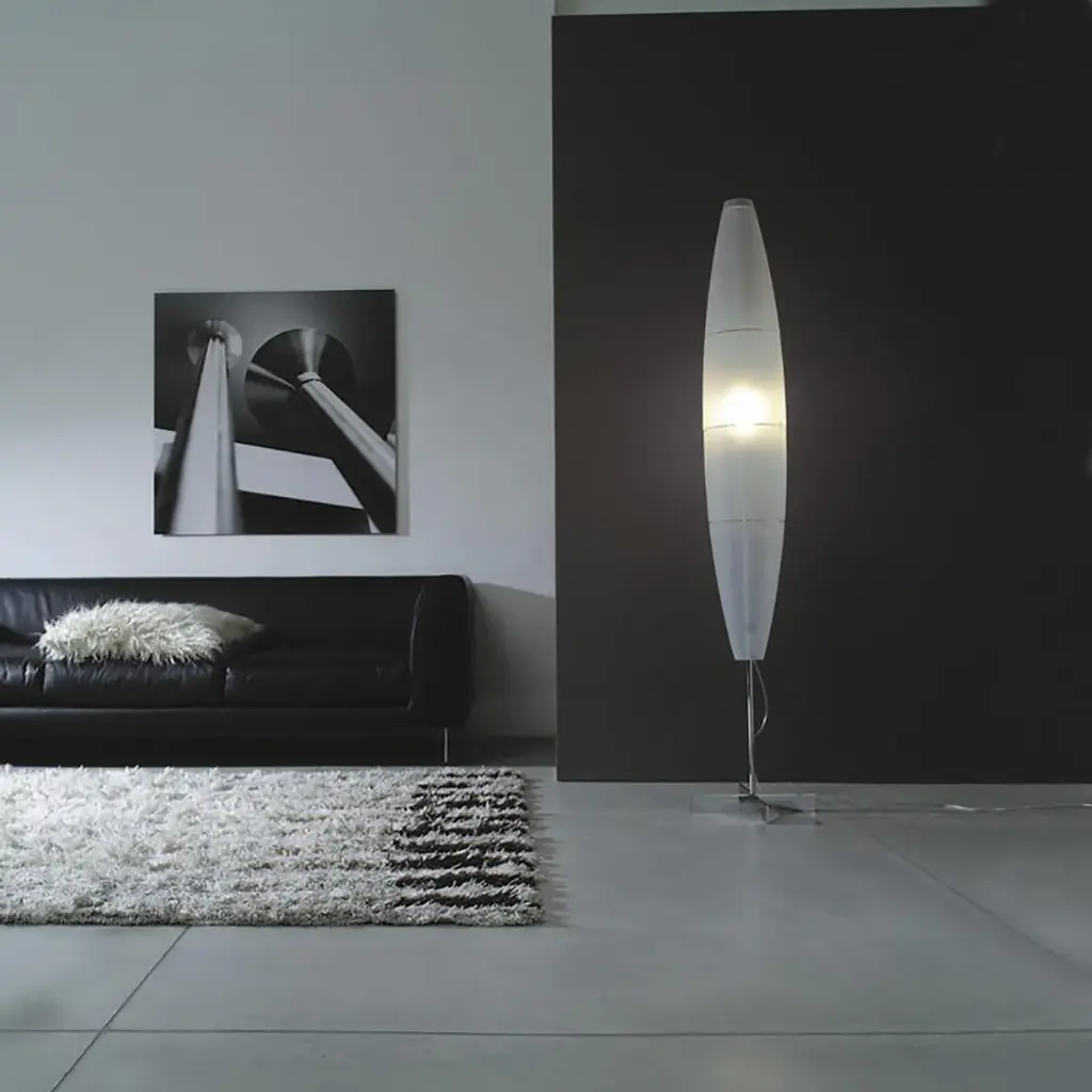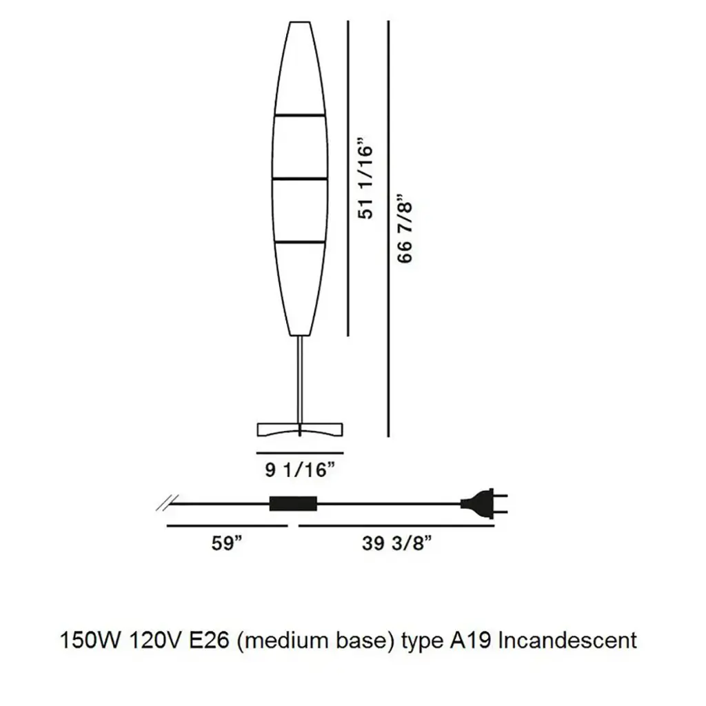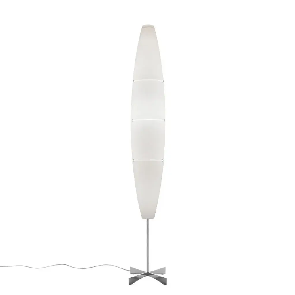 The young, light-weight appearance recalling the shape of a cigar, which ironically gives it its name, the soft light that it emits and the ease with which it blends in with the most varied contexts, have made it a great success that it is today, so much so that it is also part of the permanent collection on exhibit at the New York MoMA. The diffuser consists of four satin finish polyethylene segments. Small round metal hooks hold two subsequent elements together without them touching, leaving room for three slim empty bands that fill up with light when the lamp is on. Features