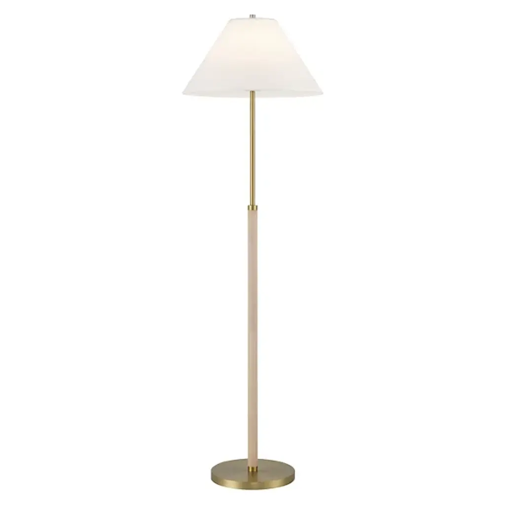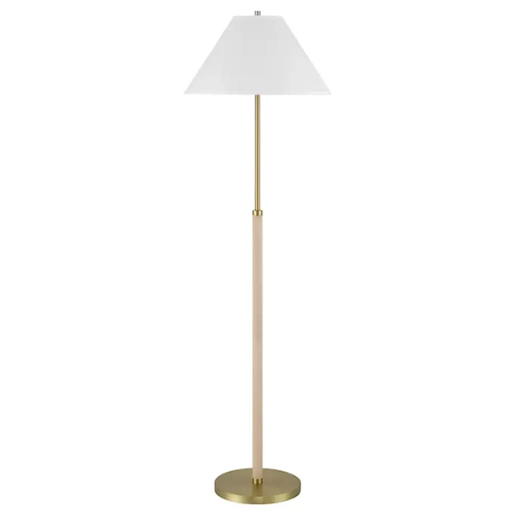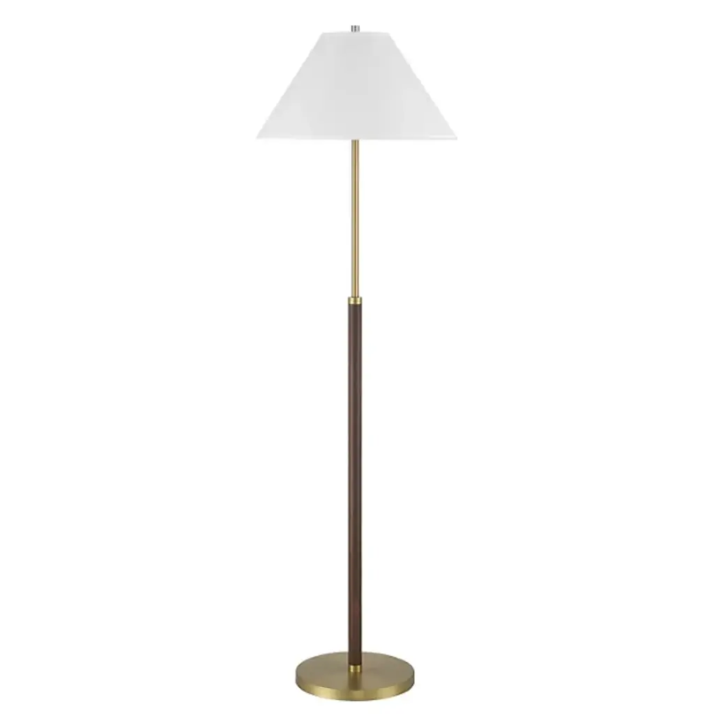 The Hayward Floor Lamp from Havenly combines classic design with modern simplicity. Featuring clean, minimal lines and a refined tapered shade, this lamp offers a sophisticated yet understated aesthetic. The antique brass finish enhances its timeless appeal, while rich wood accents provide added warmth and texture. Designed for both style and functionality, it is ideal for living rooms, bedrooms, or reading nooks, offering soft ambient lighting with an elegant touch.
