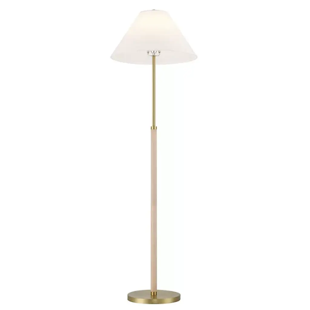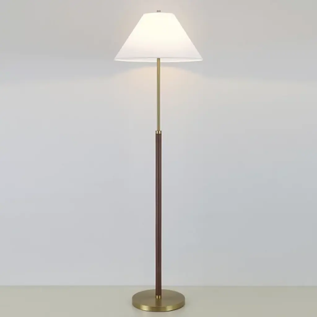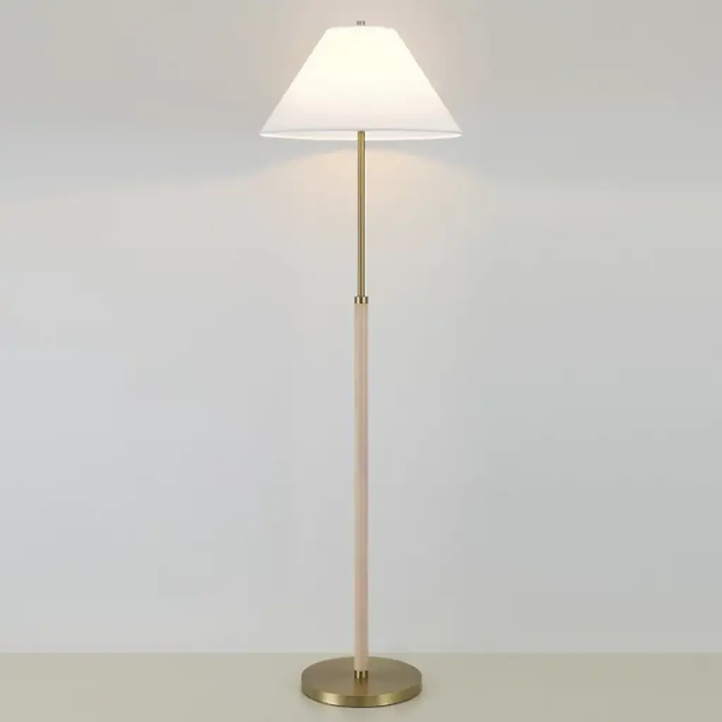 The Hayward Floor Lamp from Havenly combines classic design with modern simplicity. Featuring clean, minimal lines and a refined tapered shade, this lamp offers a sophisticated yet understated aesthetic. The antique brass finish enhances its timeless appeal, while rich wood accents provide added warmth and texture. Designed for both style and functionality, it is ideal for living rooms, bedrooms, or reading nooks, offering soft ambient lighting with an elegant touch.