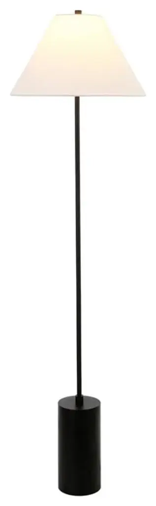 This contemporary floor lamp features a slender metal rod that extends upward from a cylindrical base crafted from steel and hand-finished in Black Bronze or golden brass. A linen shade sits at its top end, adding a crisp polished element while maintaining the minimal, circular aesthetic. This fixture is ideal for adding light and airy illumination in a bedroom, living room, or office space.Features: • Handcrafted Black Bronze finish is applied to the steel base. • Paired with an empire shade. • The shade is in a crisp chiffon white color and is made of 100% linen with polystyrene lining for durability. • Rated for one 100W incandescent bulb; 9W LED bulb, 23W fluorescent (CFL) bulb, or 9W self-ballasted LED bulb. E26-base bulb. • Includes an 8 ft. cord.Specifications: • Product Weight: 11.46 lbs • Target Audience: Adult (18 Years and Up) • Assembly details: Adult Assembly Required, Tools Not Provided • Warranty Description: 10 Day Limited Warranty