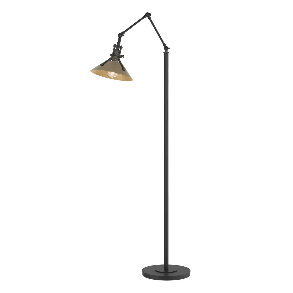 Our Henry Floor Lamp with its brass-riveted, spun- metal shade and stark design delivers a strong industrial vibe. A close look will reveal a level of craftsmanship beyond the norm. Hand-crafted by artisans here at our Vermont forge each piece is unique.