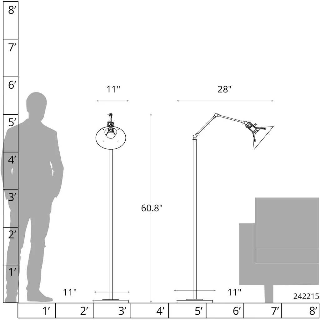 Henry 60.8 Inch 60 Watt Black And Ink Swing Arm Floor Lamp Portable Light