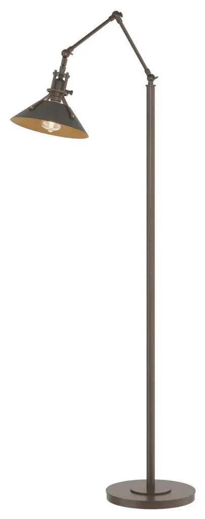 Our Henry Floor Lamp with its brass-riveted, spun- metal shade and stark design delivers a strong industrial vibe. A close look will reveal a level of craftsmanship beyond the norm. Hand-crafted by artisans here at our Vermont forge each piece is unique.Includes 1 x 60 watt A-19 E26 medium LED bulb(s)(Included).All Hubbardton Forge products are hand-crafted to last one at a time in Vermont and backed by a Lifetime Limited Warranty.