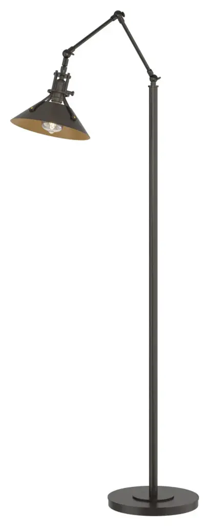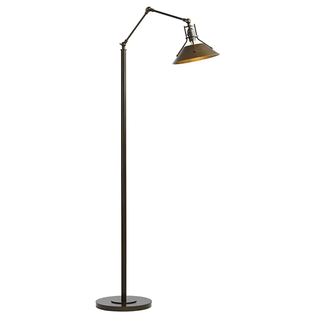 Our Henry Floor Lamp with its brass-riveted, spun- metal shade and stark design delivers a strong industrial vibe. A close look will reveal a level of craftsmanship beyond the norm. Hand-crafted by artisans here at our Vermont forge each piece is unique.Includes 1 x 60 watt A-19 E26 medium LED bulb(s)(Included).All Hubbardton Forge products are hand-crafted to last one at a time in Vermont and backed by a Lifetime Limited Warranty.