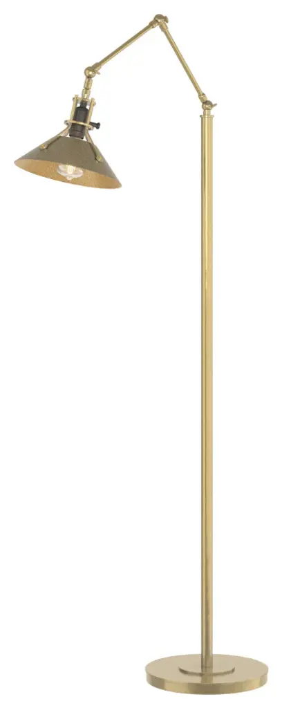 Our Henry Floor Lamp with its brass-riveted, spun- metal shade and stark design delivers a strong industrial vibe. A close look will reveal a level of craftsmanship beyond the norm. Hand-crafted by artisans here at our Vermont forge each piece is unique.Includes 1 x 60 watt A-19 E26 medium LED bulb(s)(Included).All Hubbardton Forge products are hand-crafted to last one at a time in Vermont and backed by a Lifetime Limited Warranty.