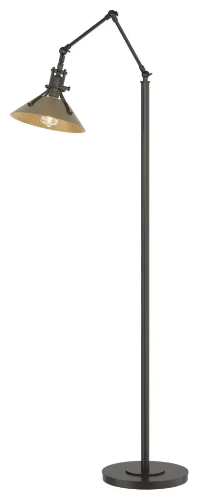 Our Henry Floor Lamp with its brass-riveted, spun- metal shade and stark design delivers a strong industrial vibe. A close look will reveal a level of craftsmanship beyond the norm. Hand-crafted by artisans here at our Vermont forge each piece is unique.Includes 1 x 60 watt A-19 E26 medium LED bulb(s)(Included).All Hubbardton Forge products are hand-crafted to last one at a time in Vermont and backed by a Lifetime Limited Warranty.
