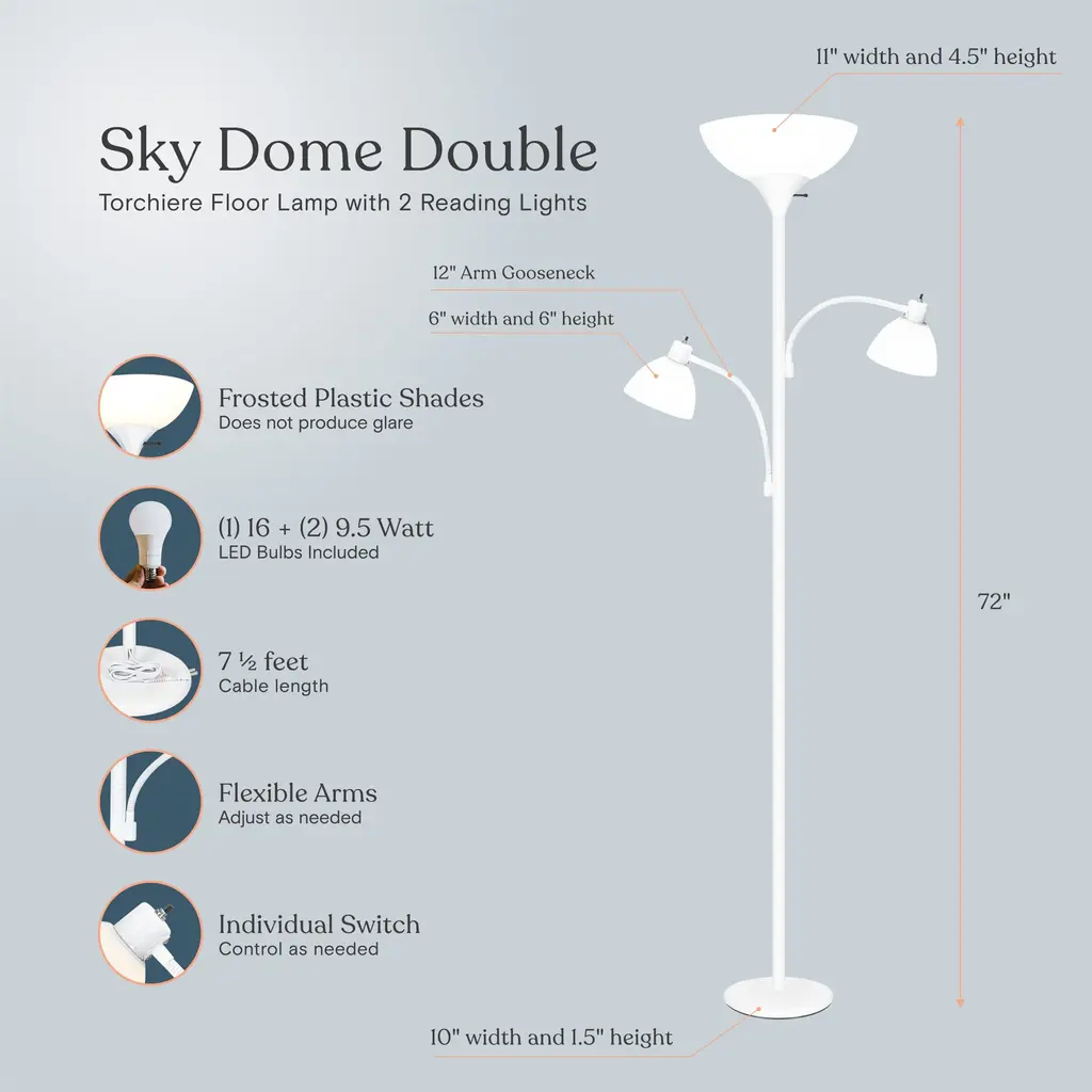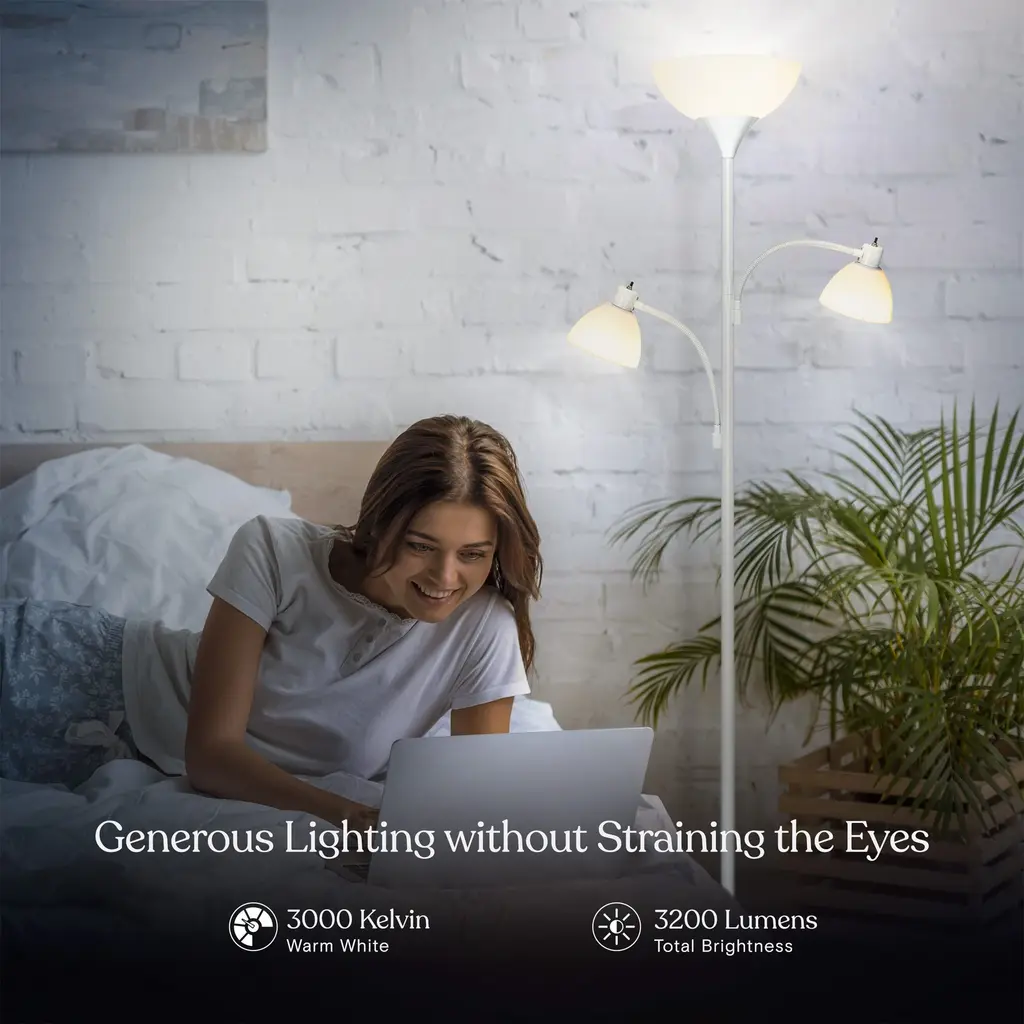 Super Bright LED Lighting: Floor lamp built in LED light with 3200 Lumens is enough to light your living room. Powered with 3 LED bulbs: 16W / 1600 lumens, 2 x 9.5W / 800 lumens, the floor lamp generates 3000K warm white colors. Whether you want to read, write or simply relax, the standing lamp provides ample illumination without straining the eyes. The lamp cord extends just over 7 ½ feet, an ideal floor lamp for living room, bedroom. Stable and Safe: Safety is paramount, the modern floor lamp's durable sturdiness makes it ideal for playrooms too, the weighted base means children or pets can't tip it over. No need to worry about the overheating issue, since the tall lamp comes with premium LED beads, the dimmable LED floor lamp will keep cool even after Long periods of use. Long lasting and Energy-saving Standing Lamp With Mother Daughter Reading Lights: These integrated LEDs are rated to last 20 years (assuming 3 hours use/day) because they don't waste energy like halogen, CFL and incandescent bulbs. Energy efficient led lights can help you reduce electricity bills, built in LED lights save your time replacing them. Save money with the Sky.