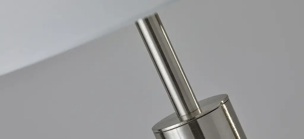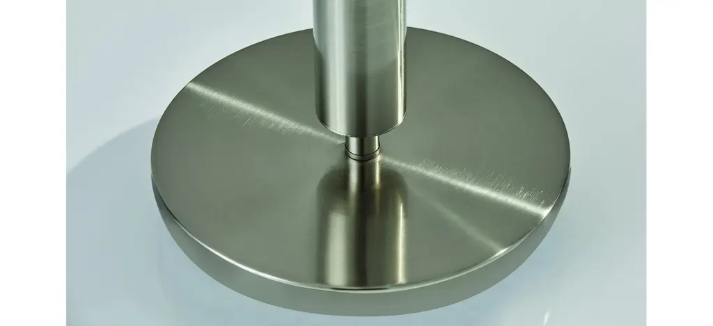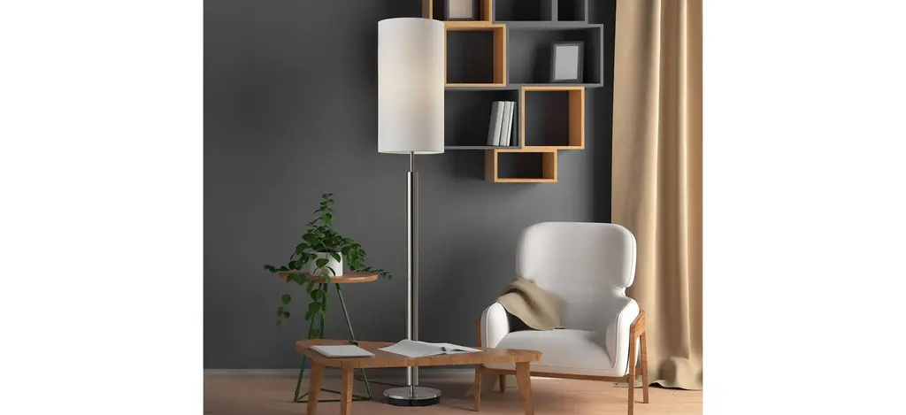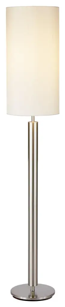 A simple, classic style with a bold presence, the Hollywood floor lamp is the perfect choice for a modern bedroom or sophisticated living space.. The tall ivory silk shade complements a chunky brushed steel pole. Control the light with a three-way touch sensor switch. This lamp is not compatible with CFL bulbs or smart outlets. Bulb is not included.