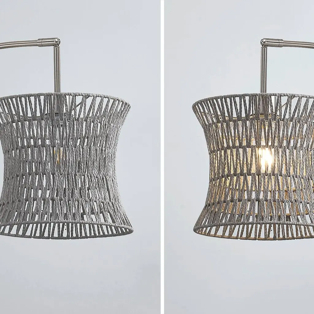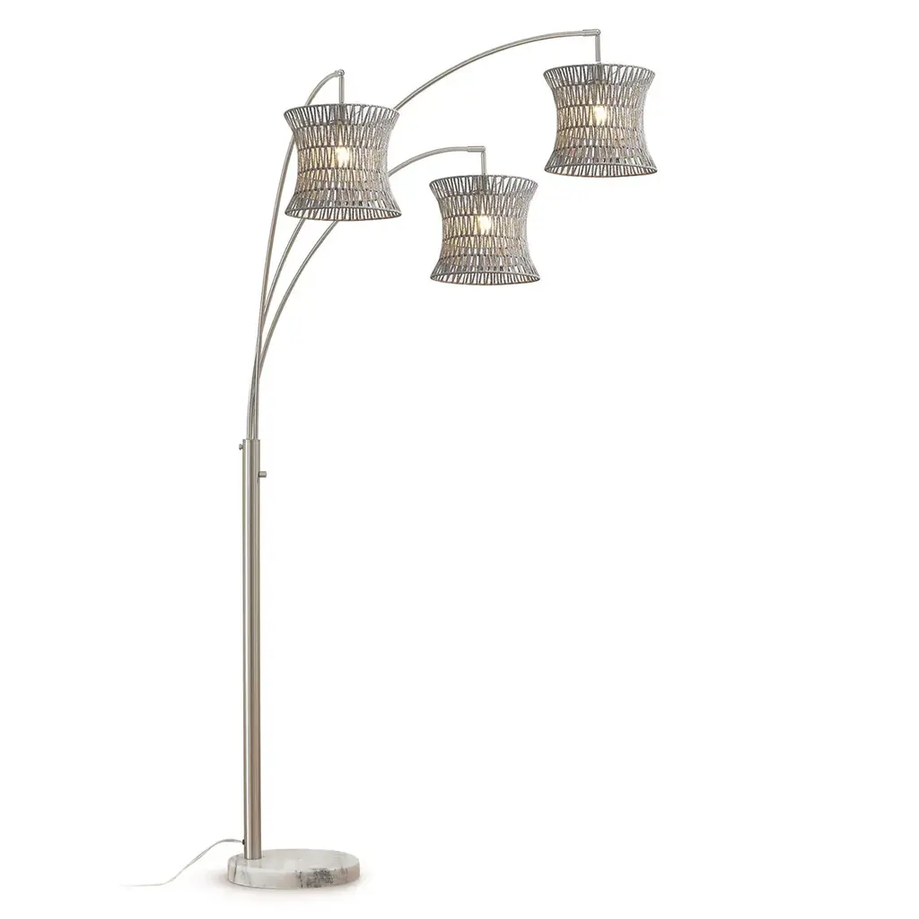 HOMEGLAM woven rattan shades lamp series, features large 83”H 3 lights arched design with hand crafted woven rattan shades. the functional swivelable lamp arc branches can be adjustable light positions, with easy on pole 4 way rotary switch for all-two-one and off light controls. the HOMEGLAM creative woven rattan shade lamps bring a decorative accent and contemporary natural ambiance in your space.• 83"H, 48" max. reach, 3 level height swivel lamp arches • 11"ø hand crafted bell shape woven rattan lamp shades• Strong steel construction with steady heavy weighted luxury marble base • Easy reach on pole rotary 4-Way switch for control all-two-one and off lights • Uses 3 pcs 60W max. incandescent or equivalent led bulbs, *Bulbs not included • UL Listed, assembly required